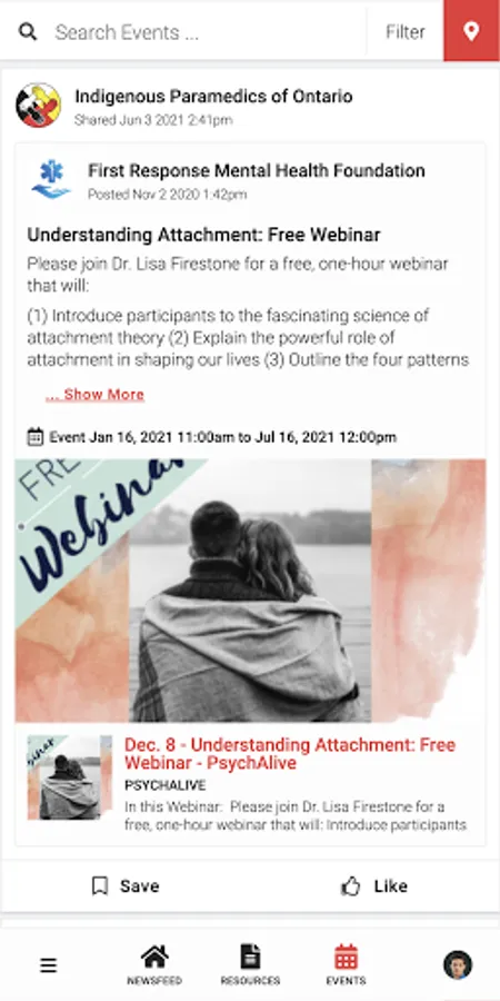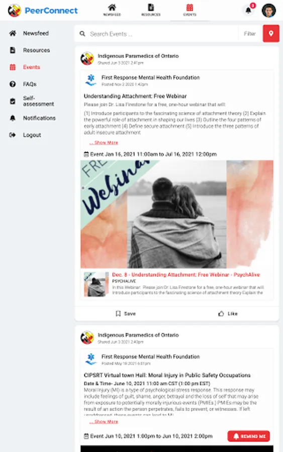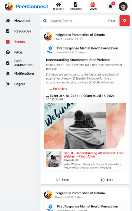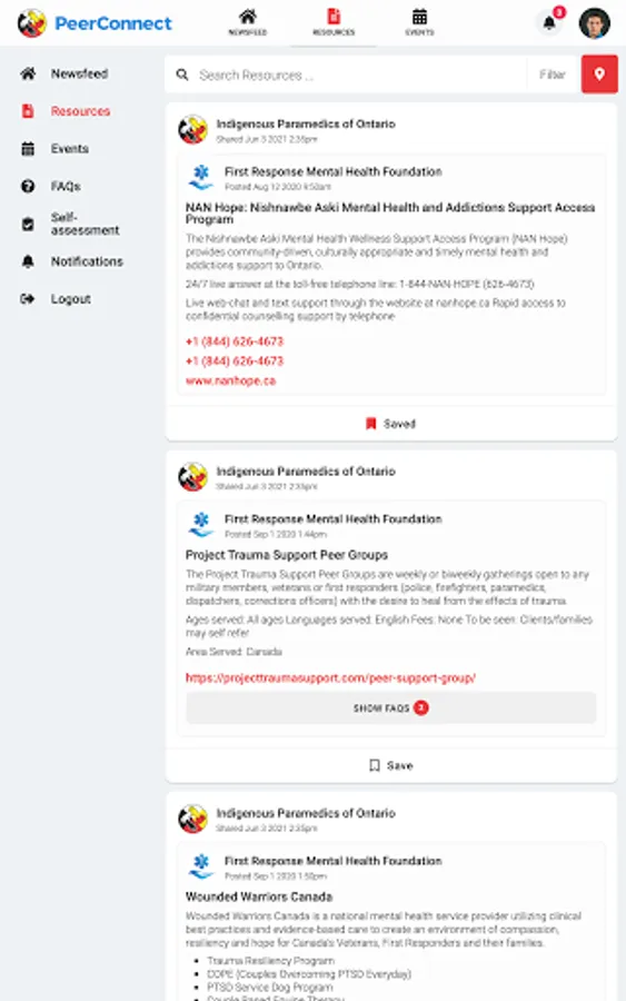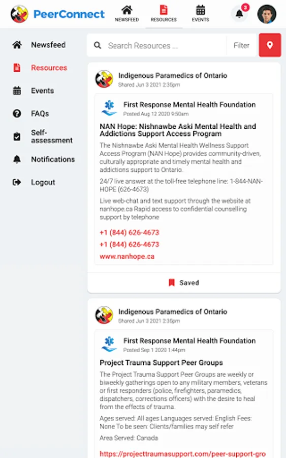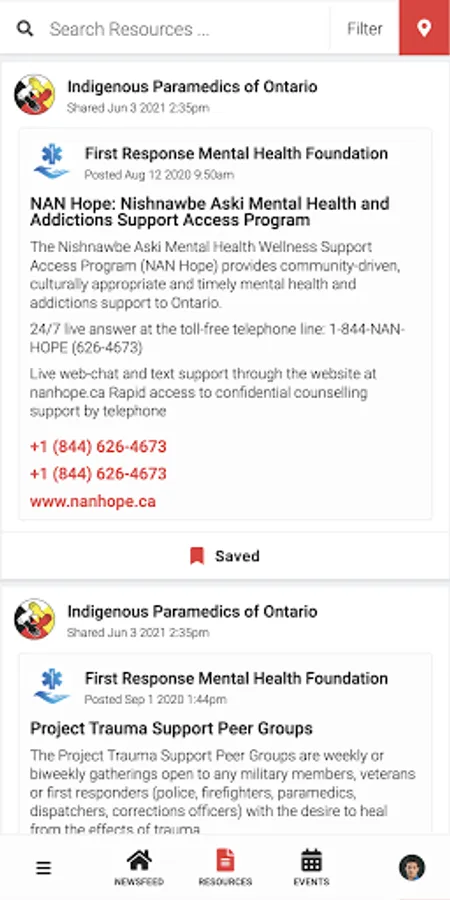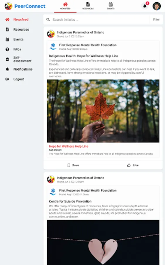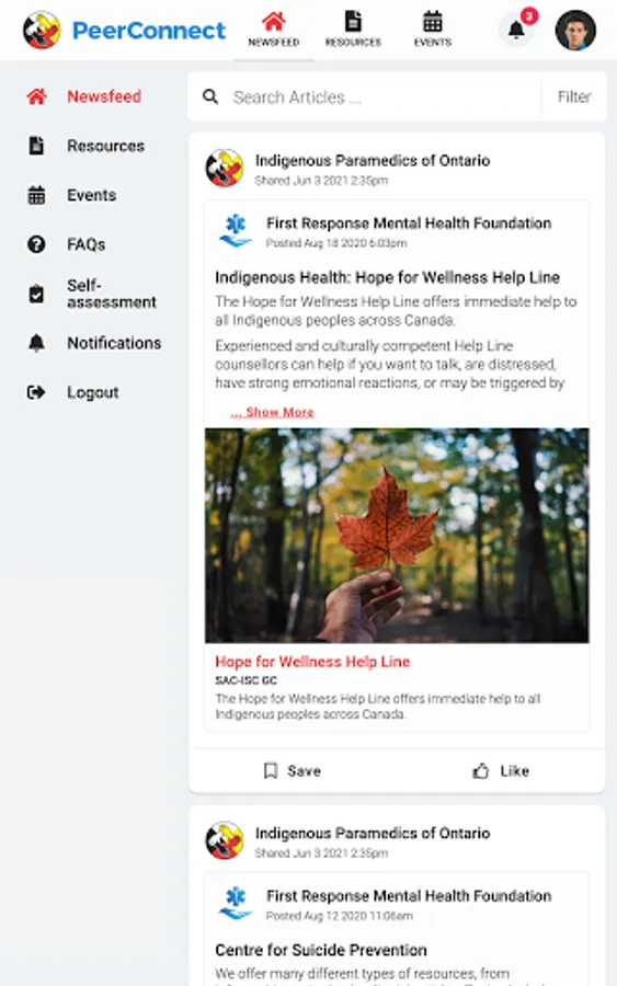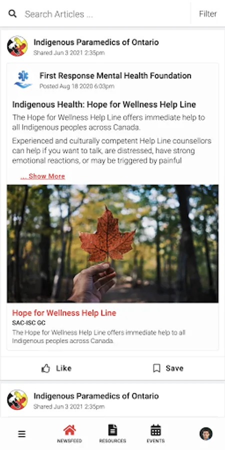 Indigenous Paramedics connects the public to information about Ontario Indigenous Paramedic Services programming and services. Users have access to newsfeed articles, resources, and events related to mental health, wellness, culture, and belonging.