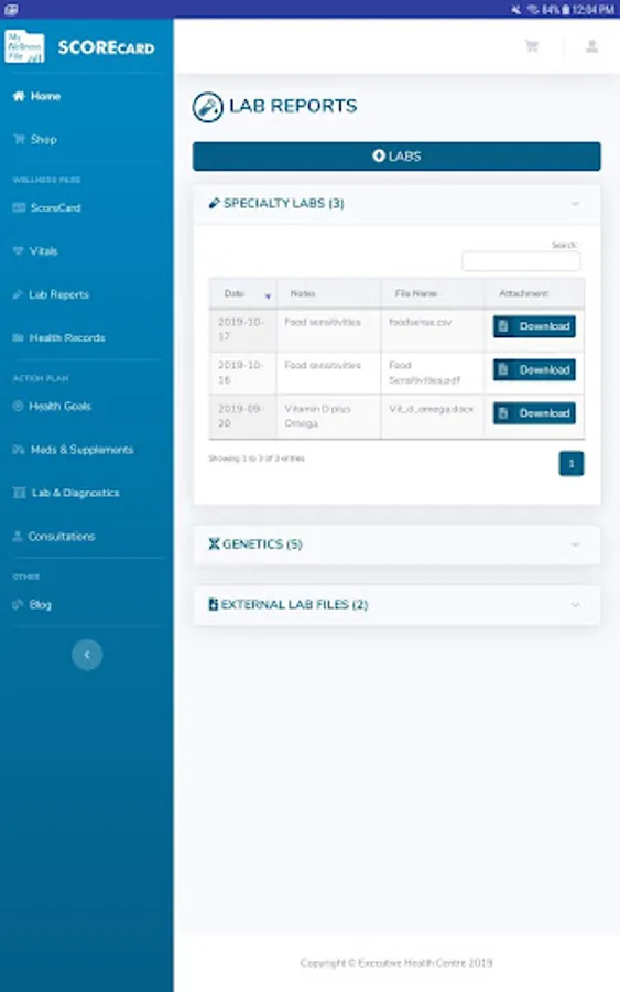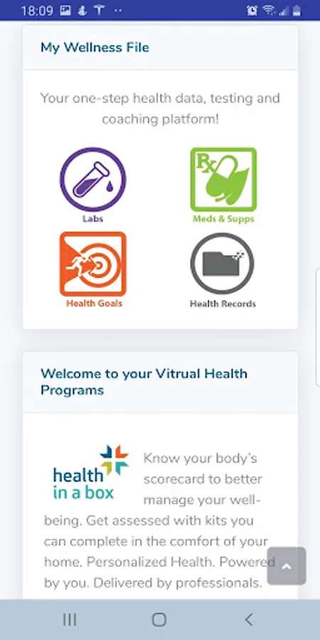 My Wellness File is a suite of online and mobile services that returns the power of health to you. This App links you to your singular destination of your health-related data, testing, coaching, and purchasing of virtual health programs and products.