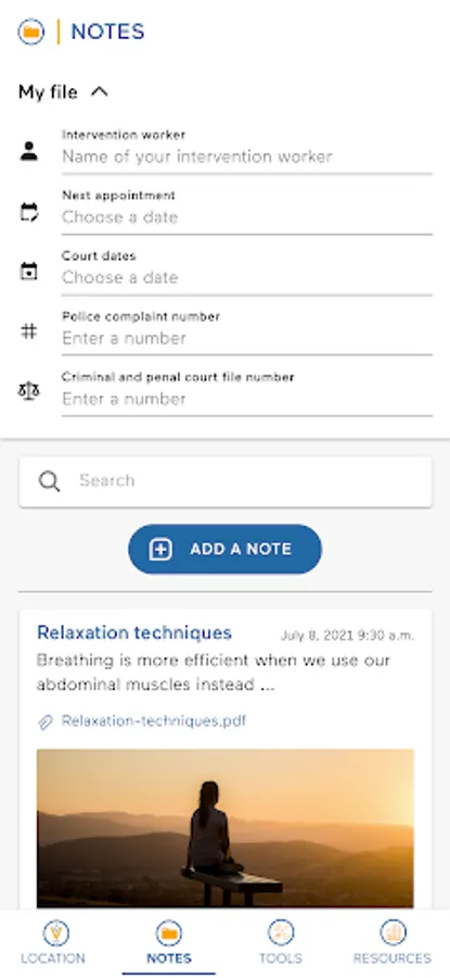It is possible to take notes, saves the dates of your next appointments, as well as the name of your helpers.