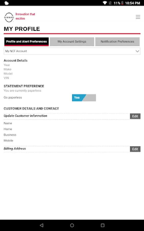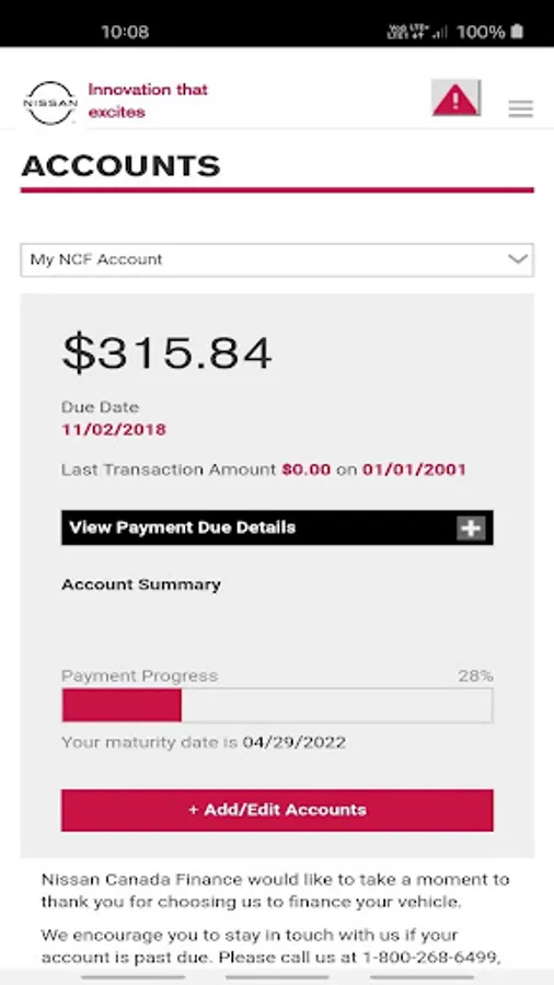The Nissan Canada Finance (NCF) Finance Account Manager app allows an existing NCF customer to manage their account on-the-go.