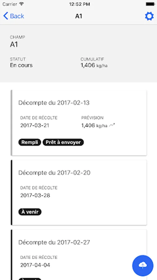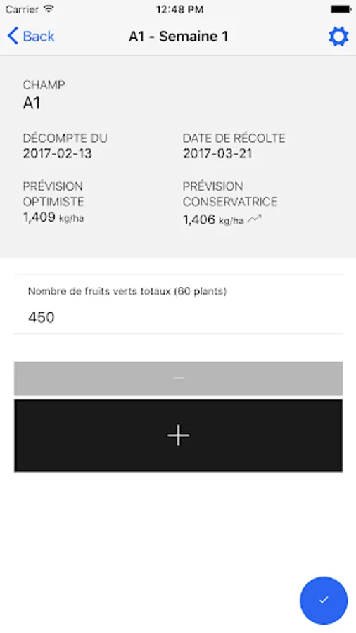 Following the weekly count of green fruit, the data is easily entered at the same place in order to generate real-time forecasts of returns for one or more field (s) given (s).