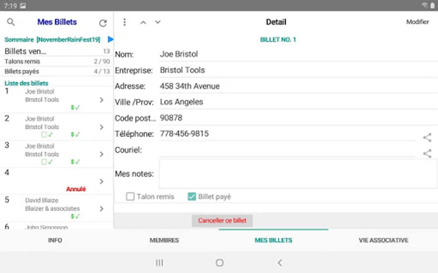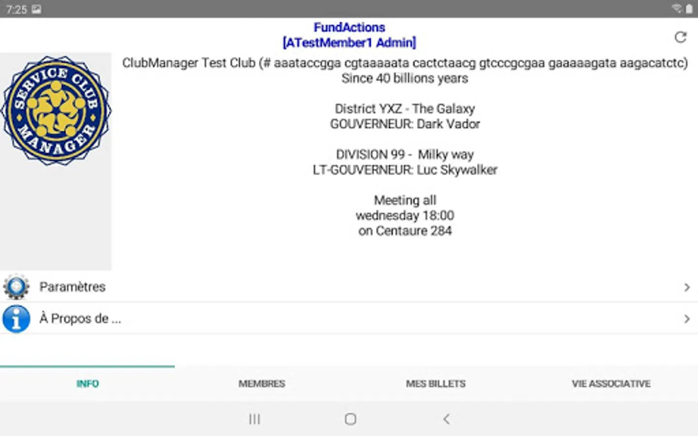 This application manages different aspects of the life of the club such as: the list of members, the calendar of activities, the follow-up of the sale of tickets during fundraising campaigns, etc.