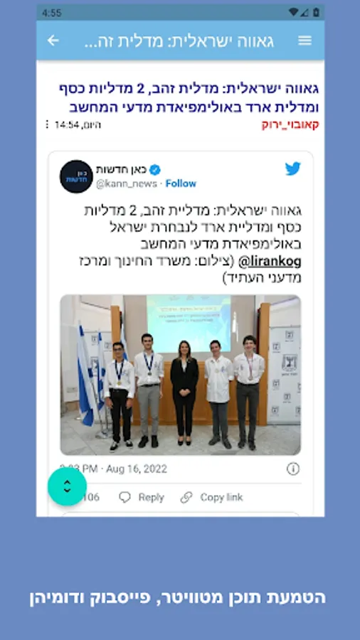 צפייה באשכולות בתצוגה מותאמת למסך נייד וכל זאת עם תמיכה מלאה בעברית