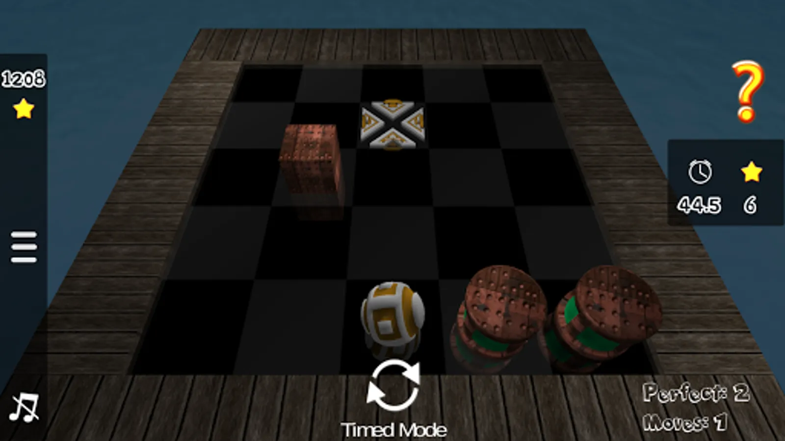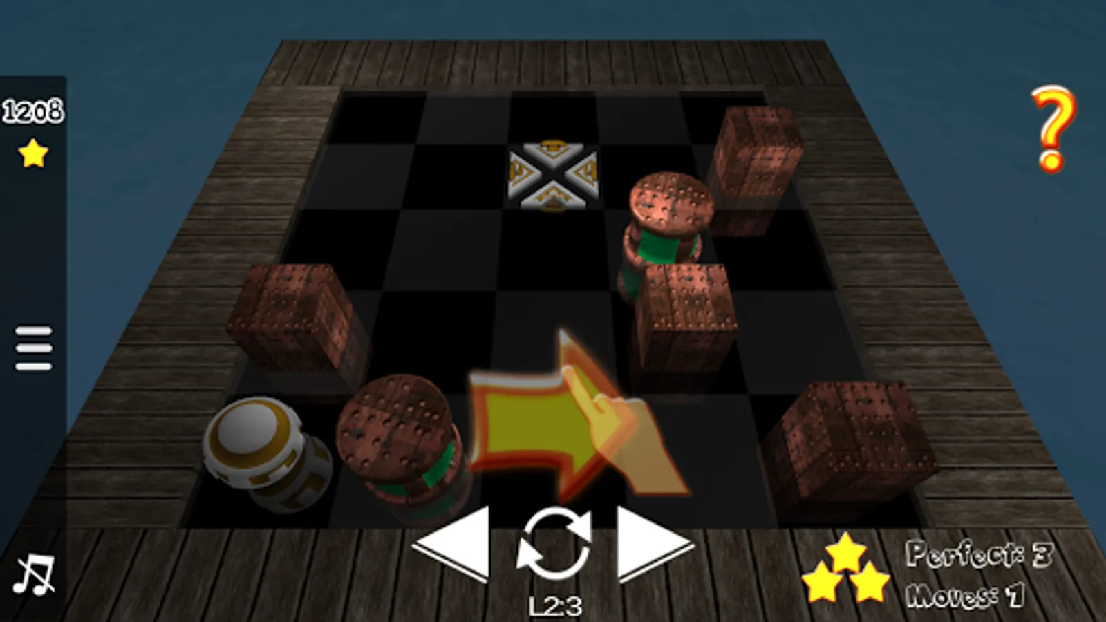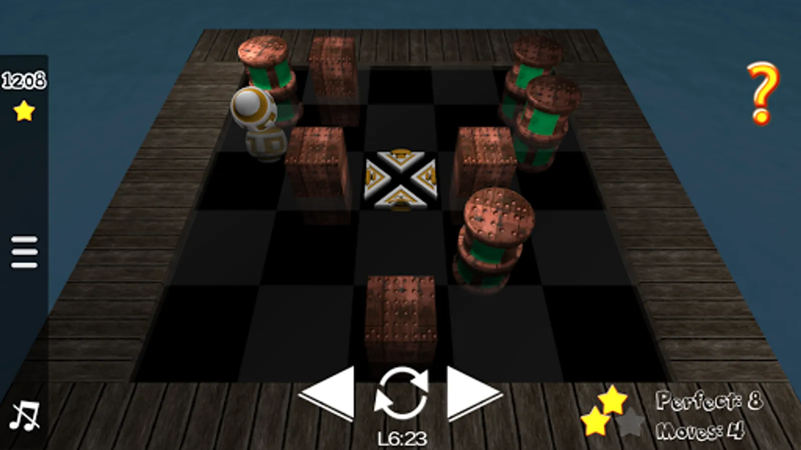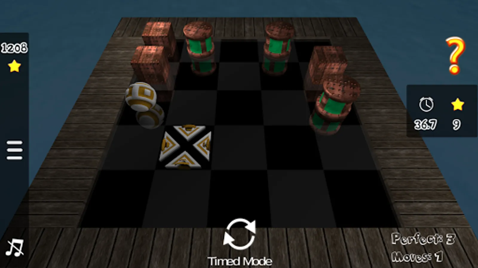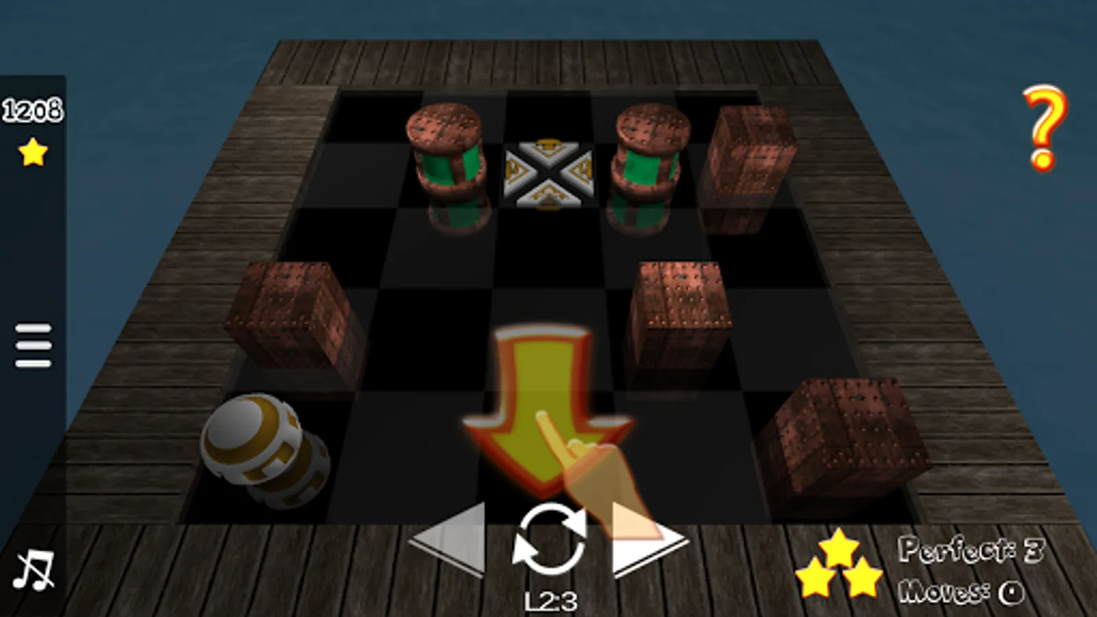 Roll the ball onto the goal position in as few moves as possible while avoiding the sliding toxic barrels.