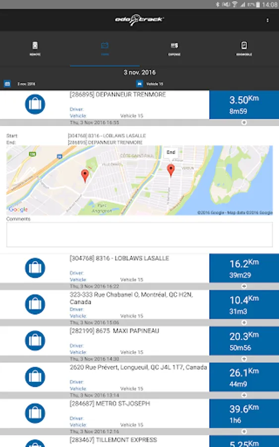 It is important to know that this application does not calculate the mileage. This application relies on a positioning system provided by the ODO50 or ODO70 solutions.