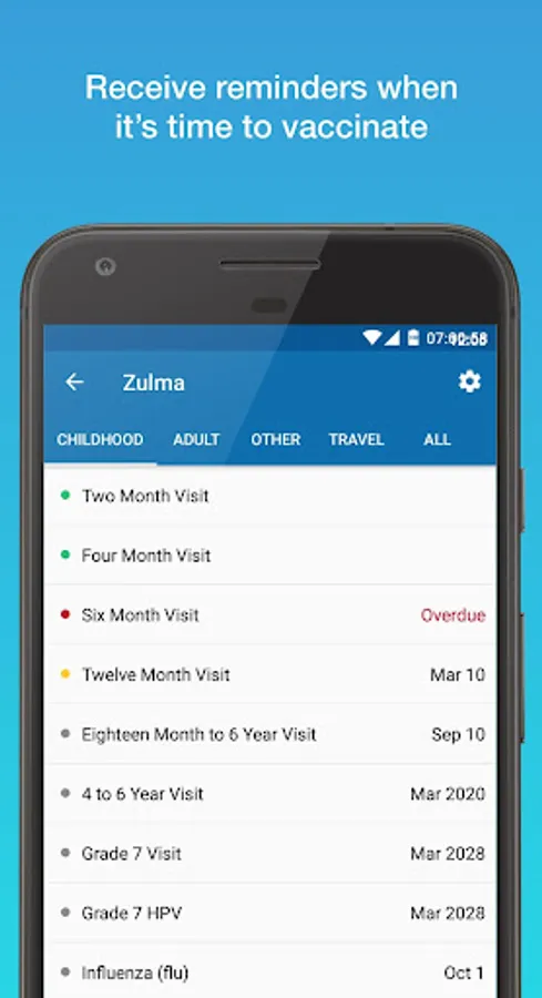 Create customized vaccination schedules for family members receiving travel or other types of vaccines.