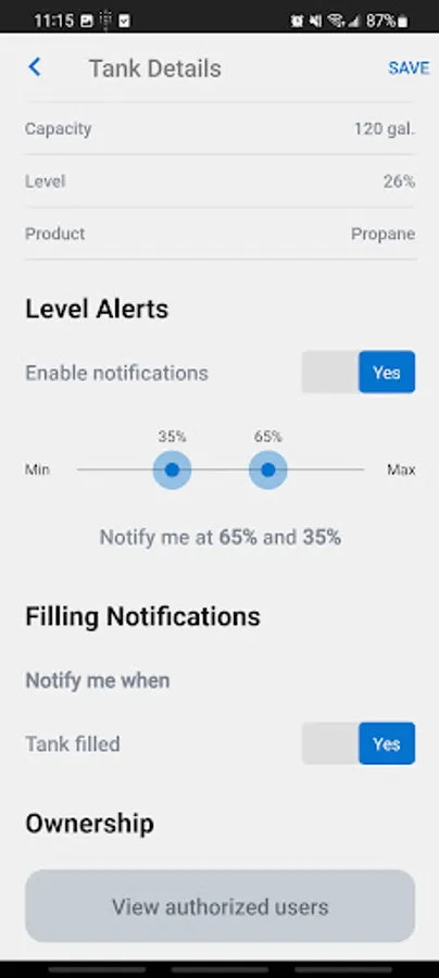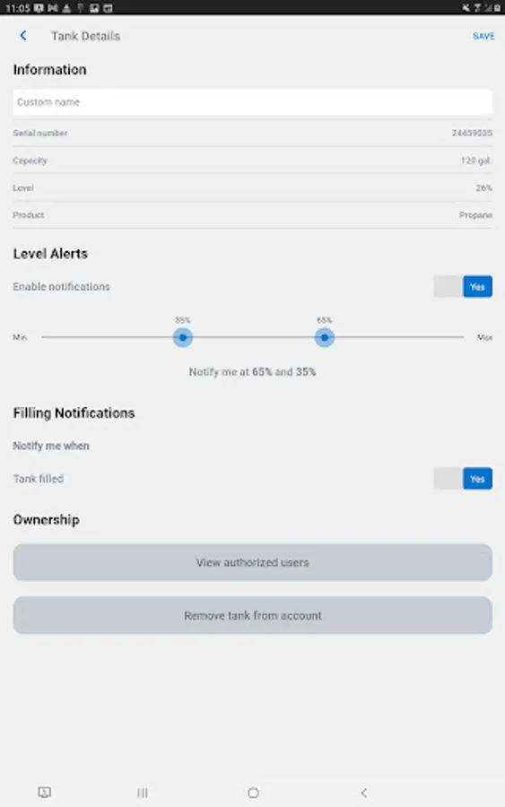3. Receive instant notifications on your smartphone when your tank reaches configurable and pre-determined levels.