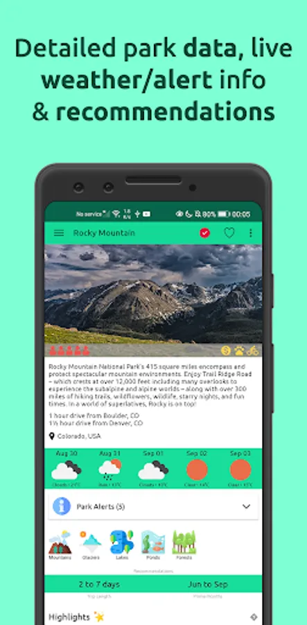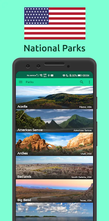 • Mark parks as visited and/or wishlisted to keep track of your National Park trips