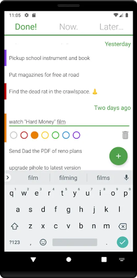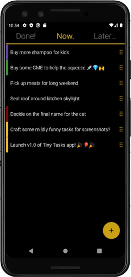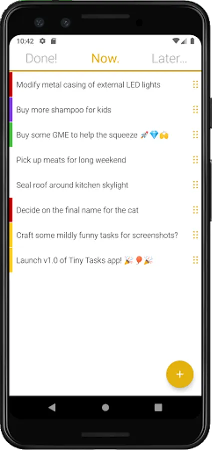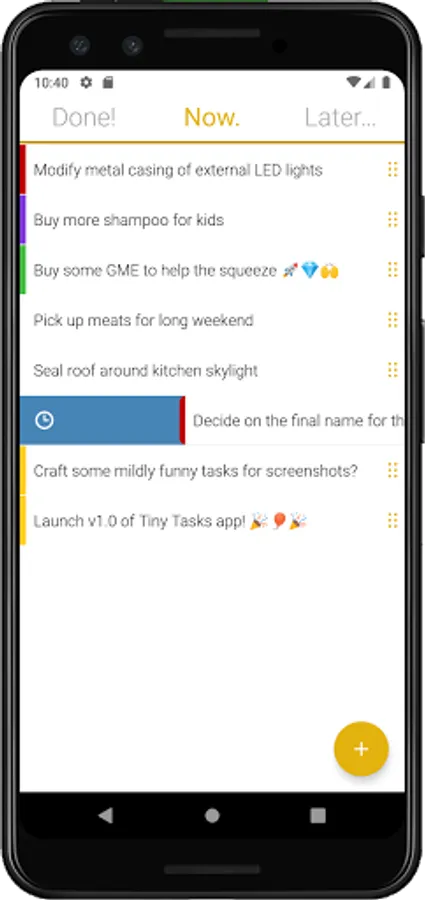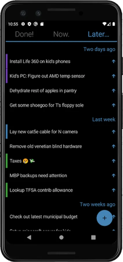 You've got tasks to do NOW, tasks to do LATER and tasks you've DONE.
