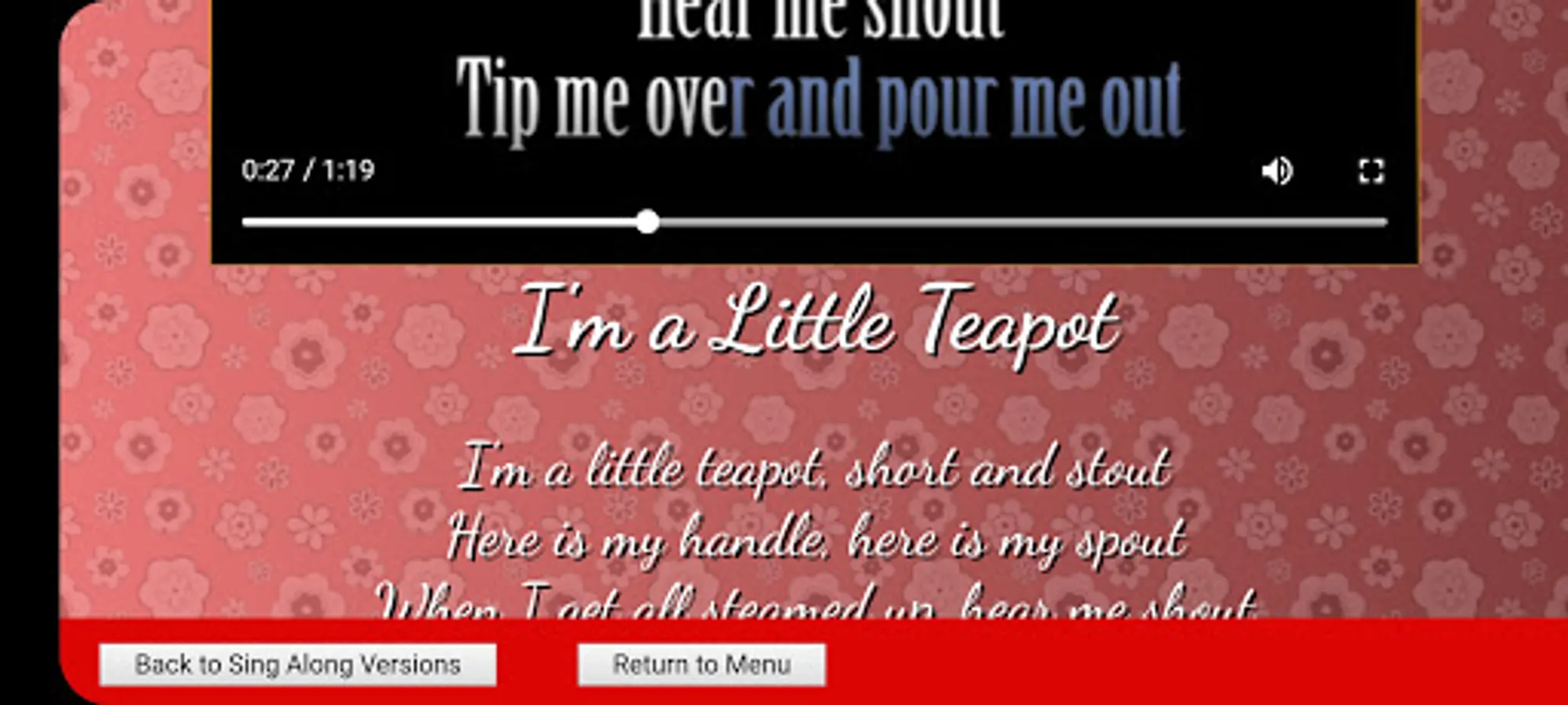 - The Sing-Along section plays a musical backing track so that you can follow along. It displays the lyrics on-screen, and scrolls through allowing you to learn the pacing of the words.
