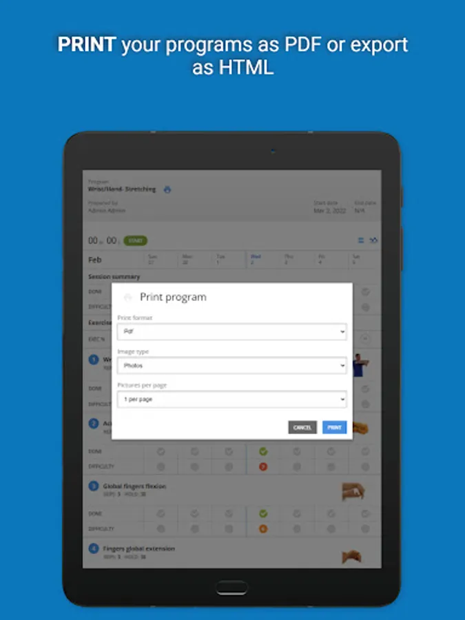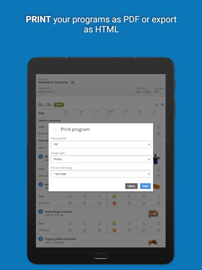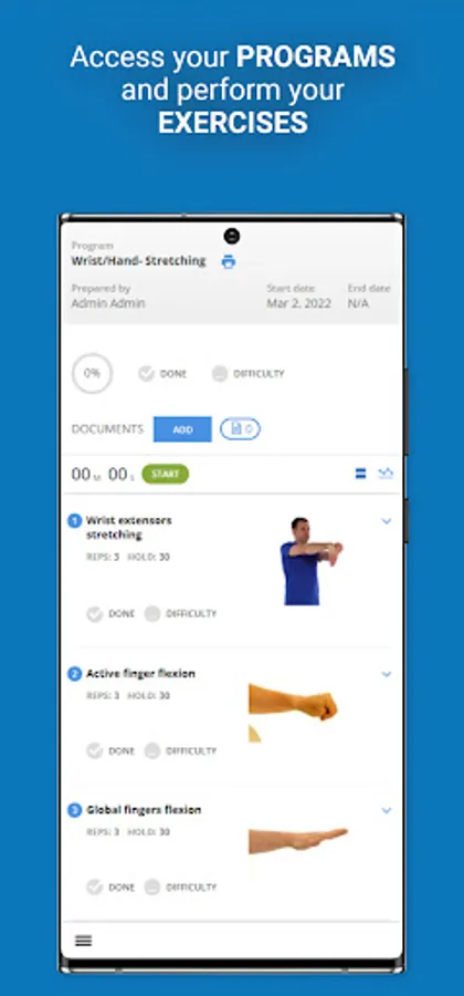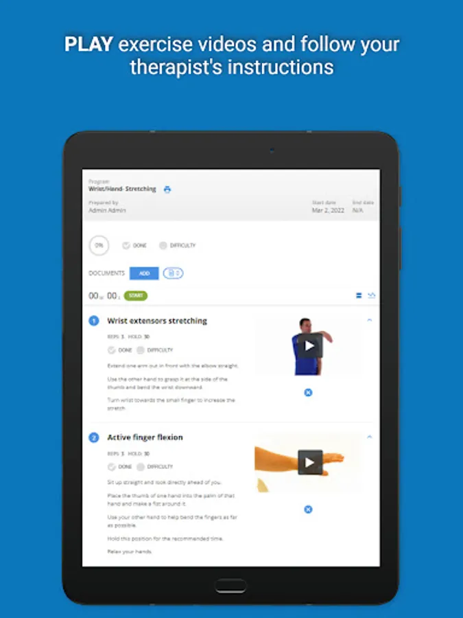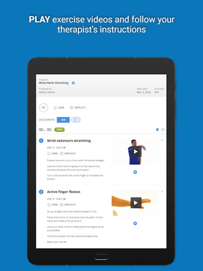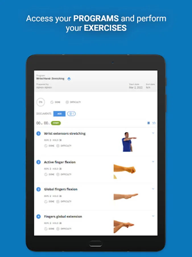 Physiotec was the first provider of rehabilitation exercise software to offer an online exercise prescription service that is accessible in real-time. Their innovative technology allows the creation of high-quality personalized exercise programs. All therapeutic, physical fitness, physiotherapy, and rehabilitation exercises are accompanied by descriptive images in the form of simplified diagrams, photos, or video clips, along with clearly written instructions. The exercises are grouped in different modules: geriatrics, neurology, orthopaedics, paediatrics, vestibular, amputees, cardio, pelvic floor, Pilates, plyometric, reinforcement, warm-up, yoga, etc.