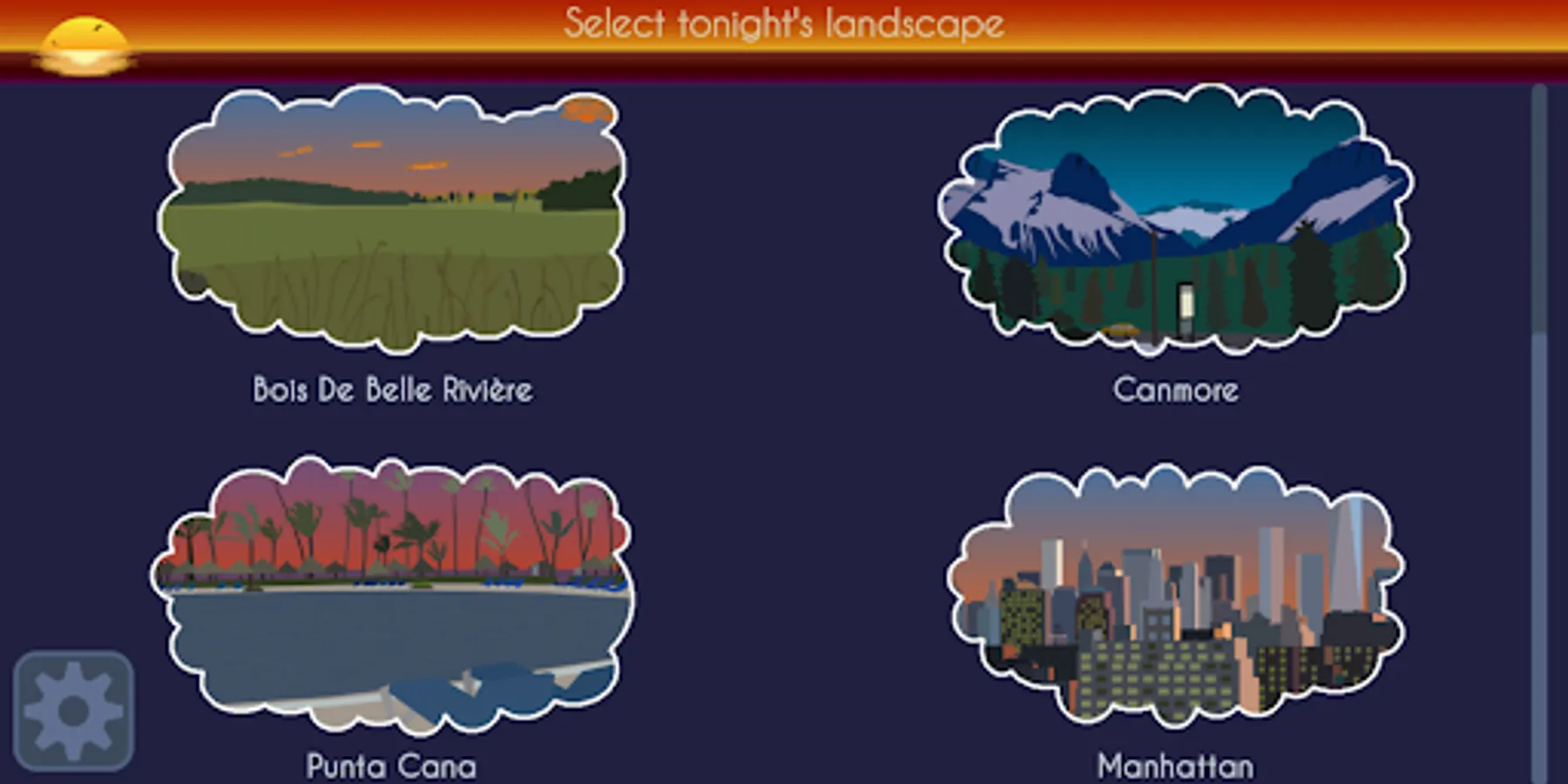 Watch the night slowly fall over gorgeous landscapes while ambient sounds fade out.