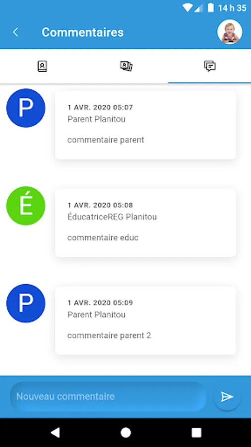 The Planitou web and mobile platform is responsible for ensuring the development of children, from 0 to 12 years old. It provides the necessary tools to the various actors in the field of childcare services, schools and camps in order to support a harmonious transition between the environments in which children evolve. Stakeholders can therefore ensure that they are taken care of in all phases of their development. In addition, they can access an intuitive digital platform that is dedicated to keeping children safe and allows them to record a wealth of information, to which parents have access at all times.