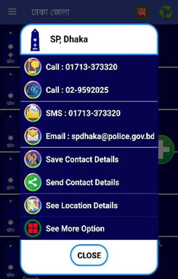 আমরা পথ চলতে বিভিন্ন সময় বিভিন্ন ধরনের অসুবিধার সম্মূখীন হই। কারনে অকারনে এসব বিপদে সব সময় নিজের সামর্থে সমাধান করা সম্ভব হয় না। আর দেশের প্রচলিত আইনে আপনার সব সমস্যা সমাধান করার বিধানও নেই। রাষ্ট্রের নিয়ম অনুযায়ী আইনগতভাবে জনগনের বিপদে সাহায্য করার জন্য রয়েছে বাংলাদেশ পুলিশ বাহিনী।আর পুলিশকে দ্রুত সংবাদ দিতে হলে প্রথম যেটা প্রয়োজন সেটা হলো পুলিশ অফিসারদের মোবাইল নাম্বার। আর সেই প্রয়োজনের কথা বিবেচনা করে বাংলাদেশের সকল পদমর্যাদার পুলিশ কর্মকর্তাদের সরকারী নম্বর সমূহ নিয়ে এই Software টি তৈরি করা। আশাকরি আপনাদের অনাকাঙ্খিত বিপদে নম্বর সমূহ কাজে আসবে।