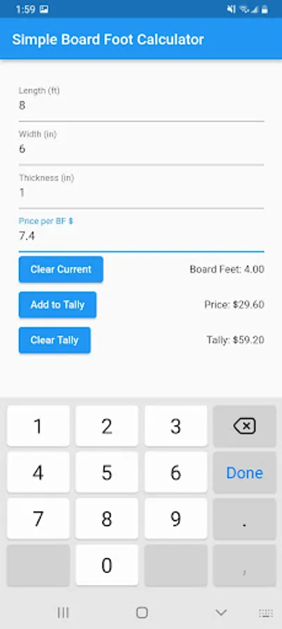 Board Foot Calculator Screenshots