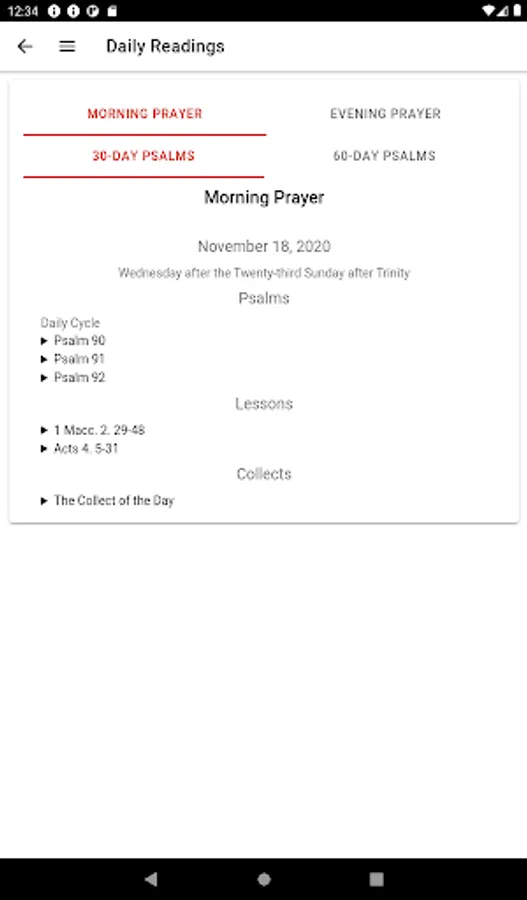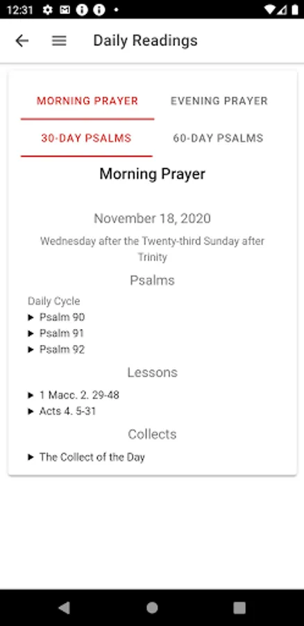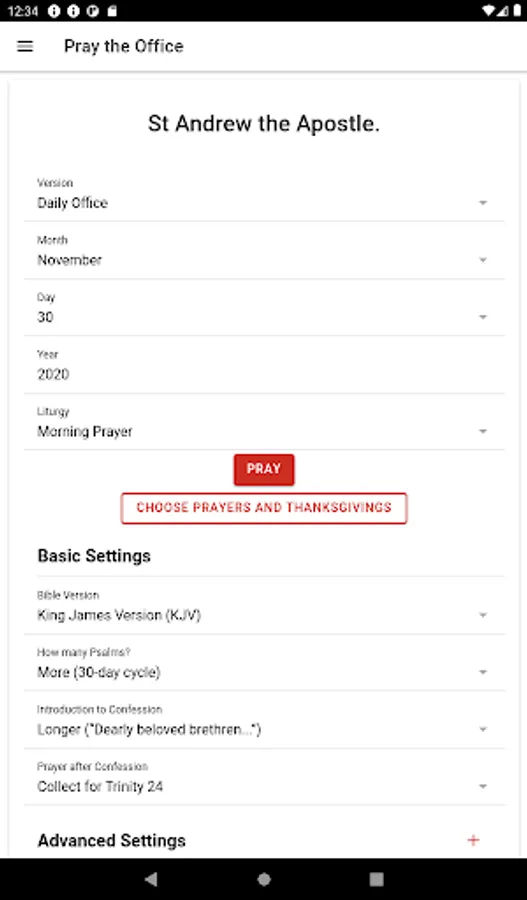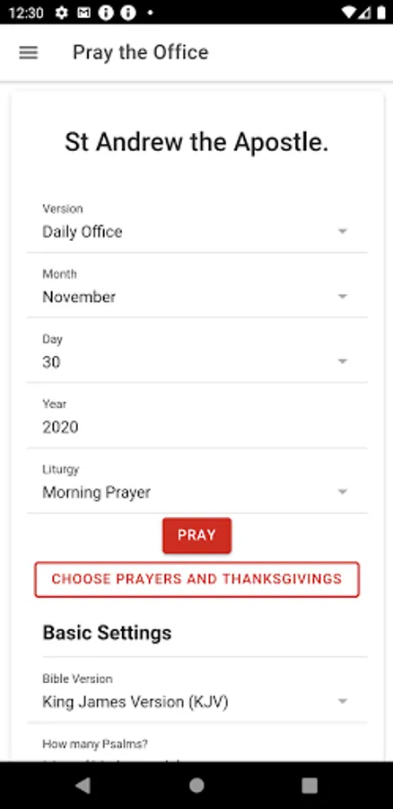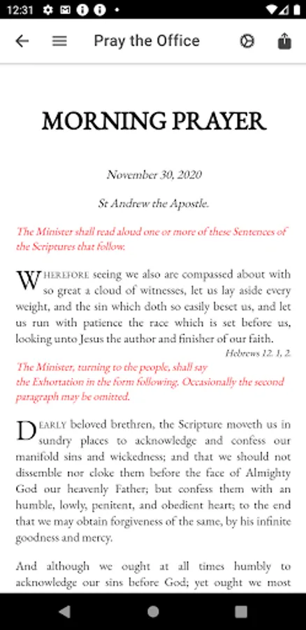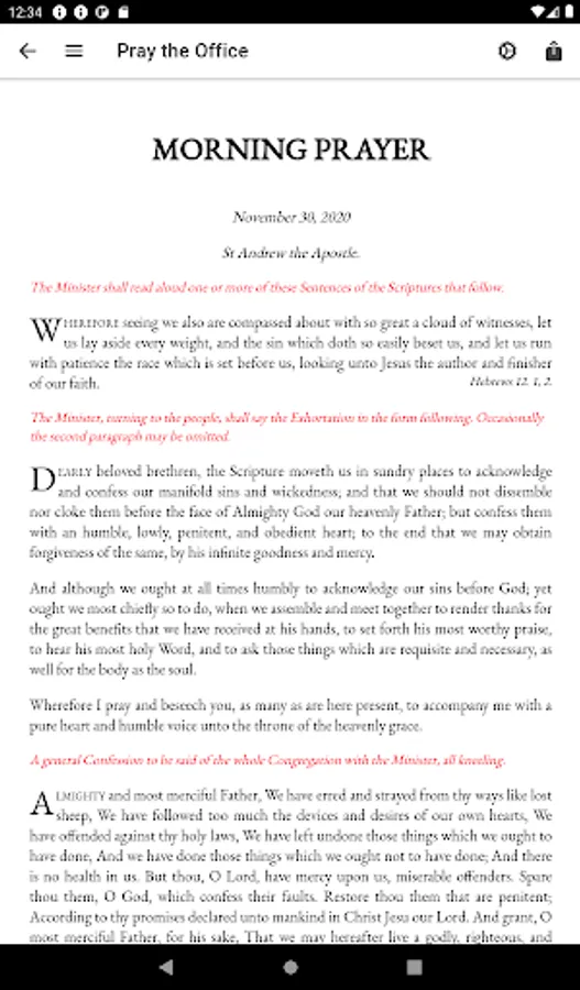 The app automatically generates the full services for every day of the year, including the Psalms, Bible lessons, seasonal variations and collects. Simplified and streamlined for a user-friendly experience. Just press Pray!