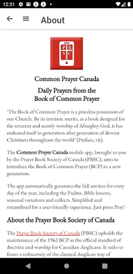 The Common Prayer Canada app, brought to you by the Prayer Book Society of Canada (PBSC), introduces the 1962 Canadian Book of Common Prayer to a new generation.