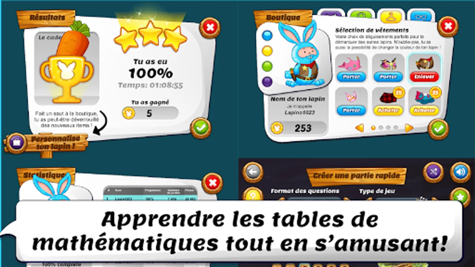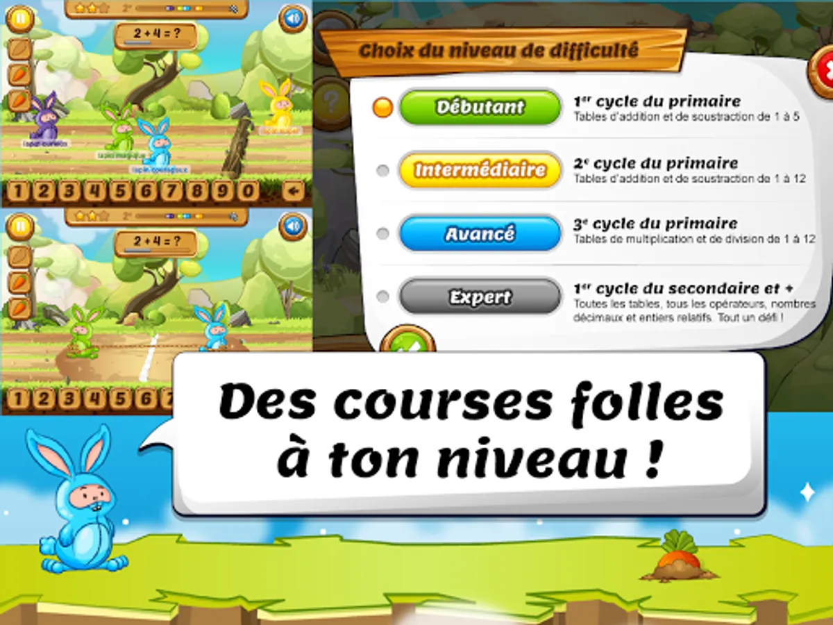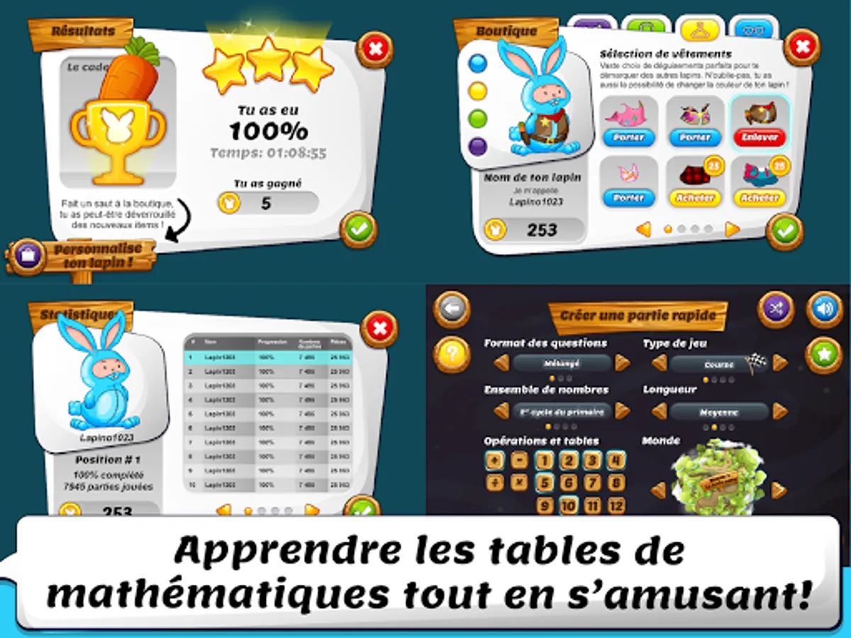 Transforme-toi en lapin et amuse-toi à pratiquer tes tables de multiplication, de division, d'addition et de soustraction!