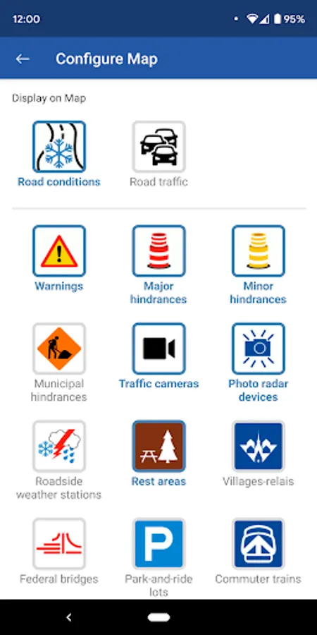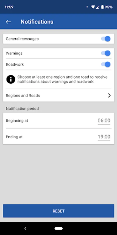 Additionally, you can enable alerts to receive notifications on current warnings, roadwork and general messages.