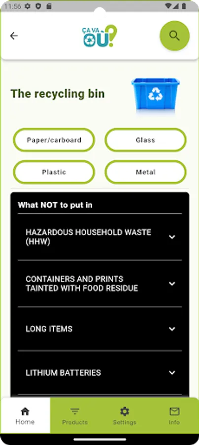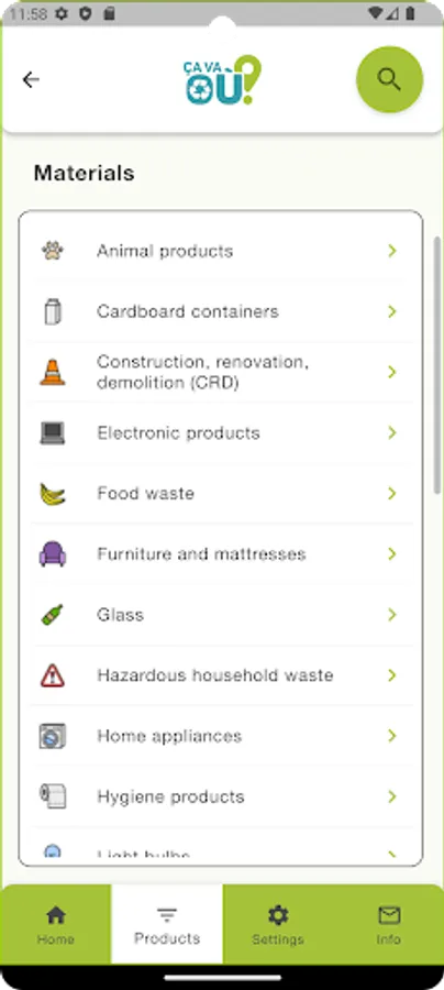 Ça va où? quickly answers your questions and helps you sort your products and materials, whether they belong in an ecocentre, a drop-off site, the recycling bin, the organic waste bin, a special collection or even the trash bin.