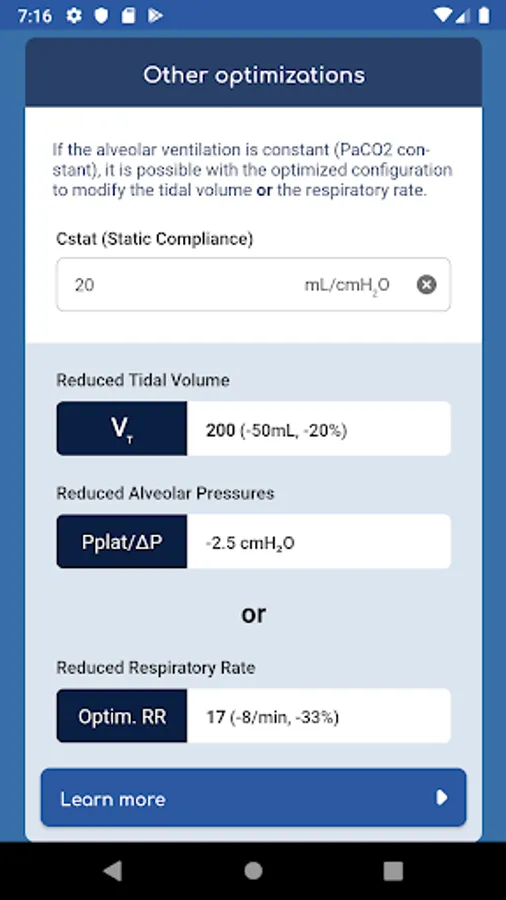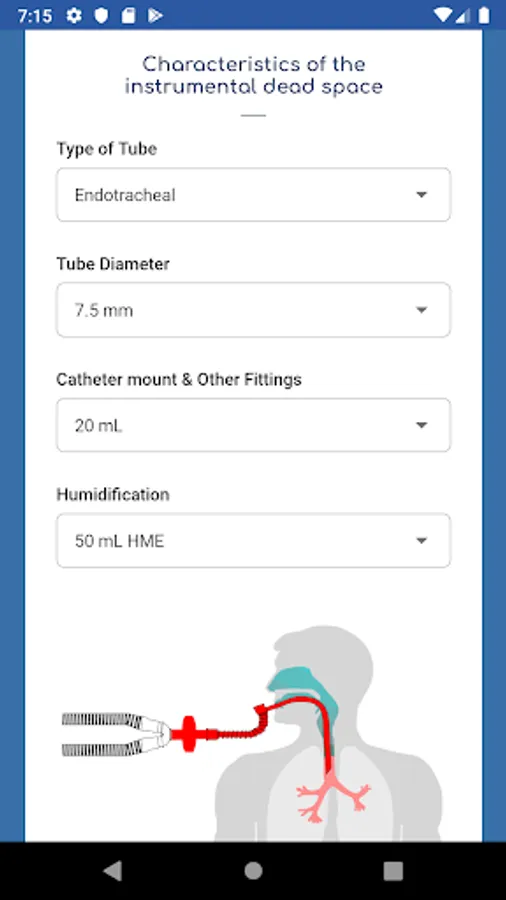 In addition to the measurements of these different parameters, several educational texts are accessible in the application to understand what dead space is during mechanical ventilation, what is instrumental dead space, what is the impact of dead space in function of ventilation settings and possible gains.