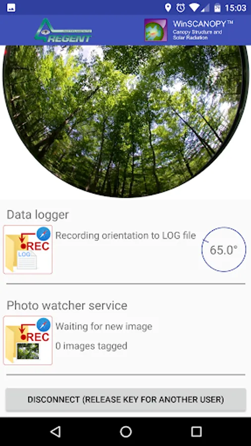 WinSCANOPY Mobile is a complementary application for Regent Instruments’ WinSCANOPY for Windows software and O-Mount hardware for hemispherical photos acquisition and analysis. During photo acquisition in field or forest it records the camera orientation relative to magnetic north (and optionally the lattitude and longitude) and store it into a LOG file or the image file (depending upon the camera model). These data are then used by WinSCANOPY for Windows to compute radiation data for a given site. It is made specifically for cameras and hardware (OMount) sold by Regent Instruments. The app must be activated by a key that comes when purchasing a complete WinSCANOPY system from Regent Instruments Inc (www.regentinstruments.com).