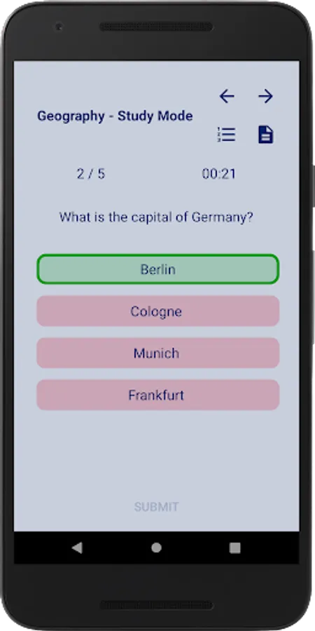 -Choose to take the quiz in Study Mode (answers revealed as you go), or Exam Mode (answers are revealed after quiz is completed)