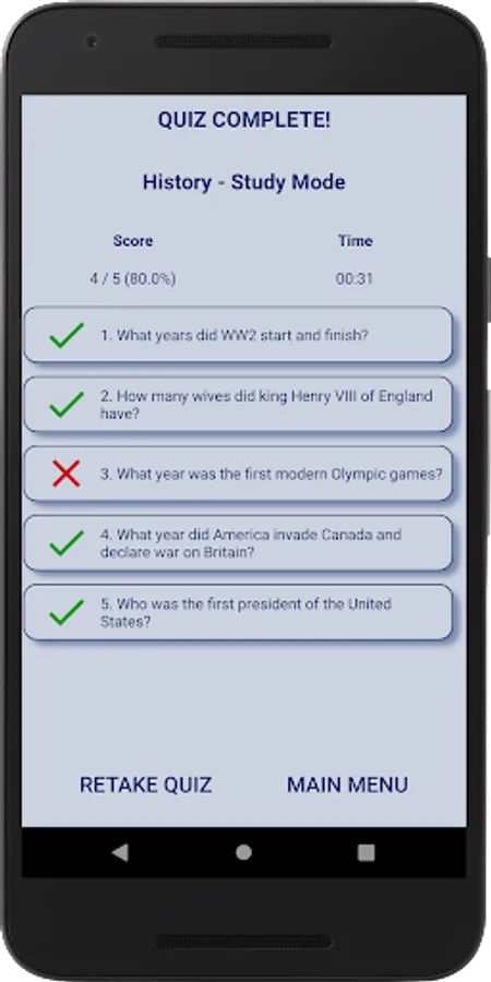 -Make any size custom quiz, questionnaire, or trivia game about any topic!