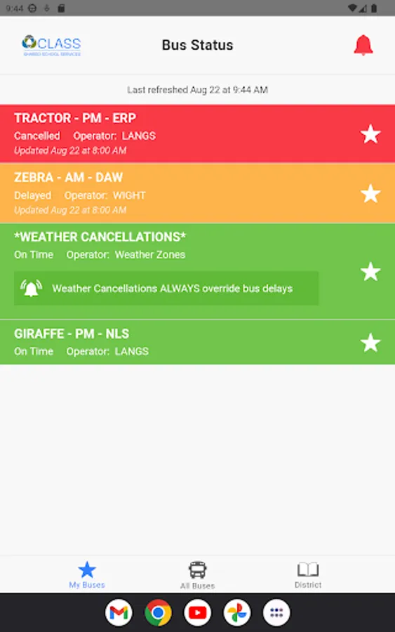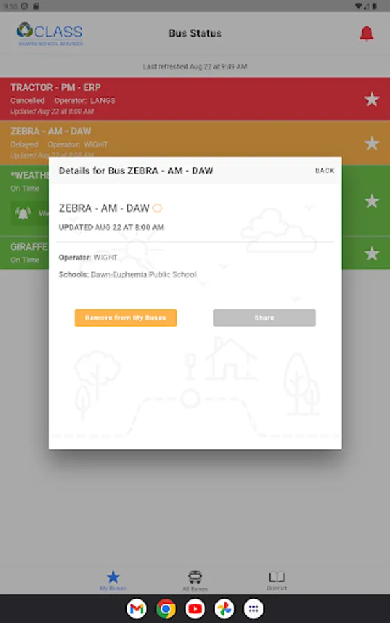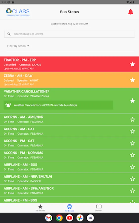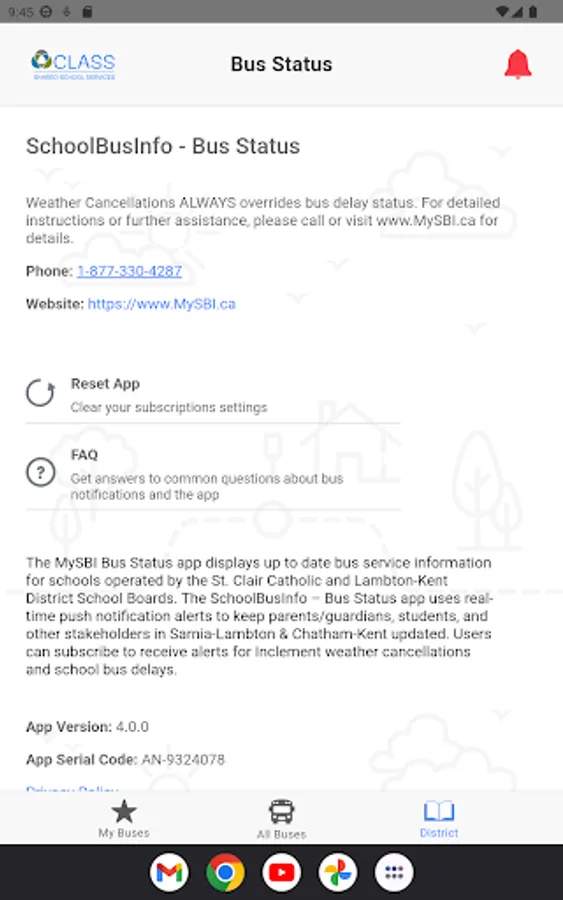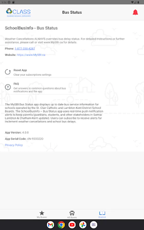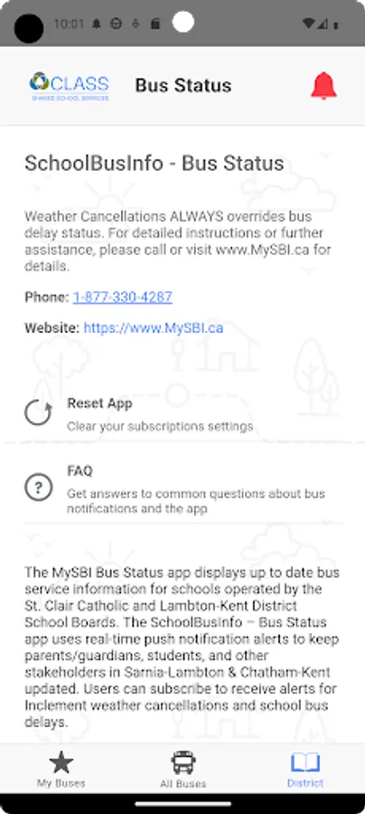 SchoolBusInfo — Bus Status 4 provides up to date bus service information for schools in the St. Clair Catholic and Lambton-Kent District School Boards. Choose which buses to follow, and receive push notifications when one of your buses is cancelled, delayed, or early!