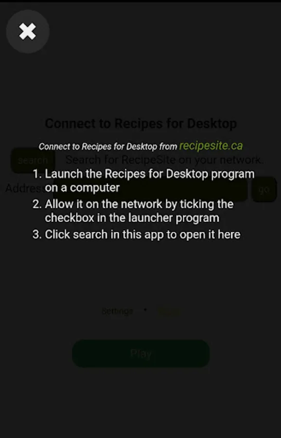 Connect to the Recipes app on your network (from recipesite.ca) without having to type the link into your browser.