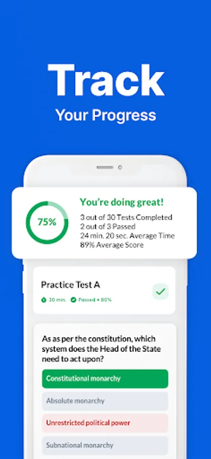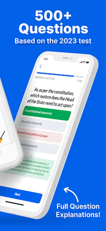 All the app's material is based on the official “Australian Citizenship: Our Common Bond” booklet, by the Australia Department of Home Affairs. Practise the questions that you will be asked on the test. Get full explanations for every question.