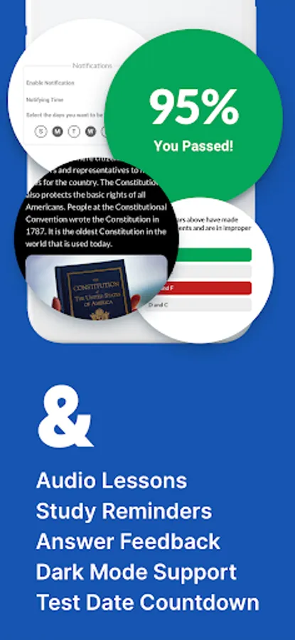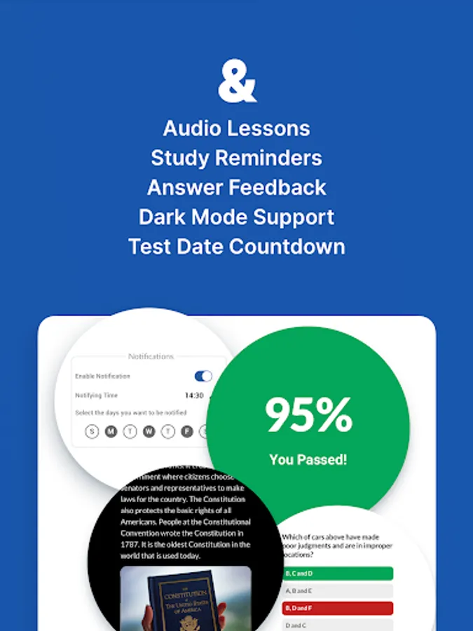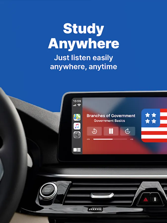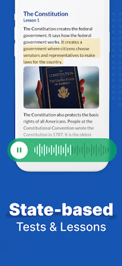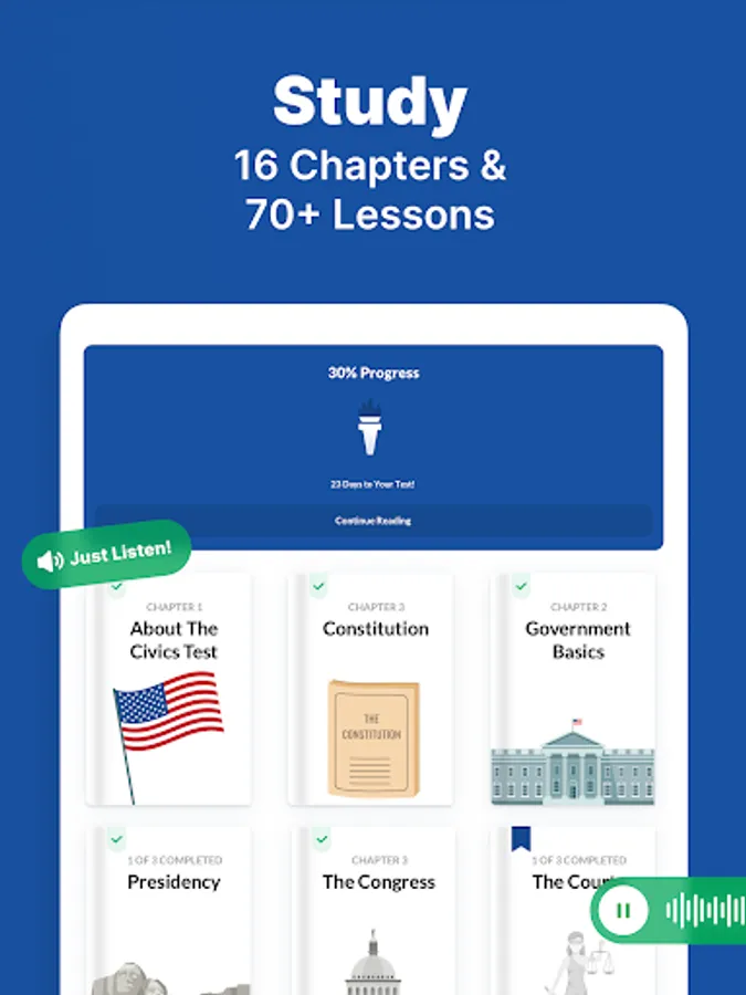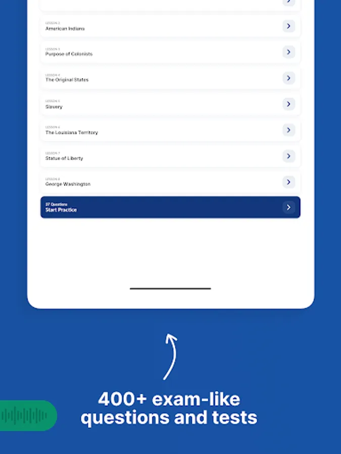 Our audio-enabled lessons allow you to absorb the content paragraph by paragraph, enhancing your focus. Conveniently prepare for your US Citizenship Test 2023 while commuting to work or school!