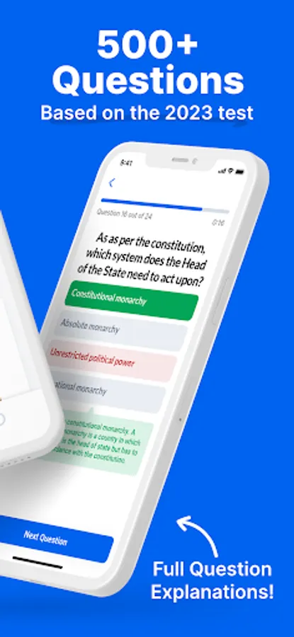 All material provided in the app is derived directly from the official “Life in the UK Official Study Guide”, curated by the British Department of Home Affairs. Practice for the Life in the UK Test with questions that closely resemble those you'll find on the actual exam. We provide in-depth explanations for every question, ensuring your preparation for the Life in the UK test 2023 is thorough and confident.