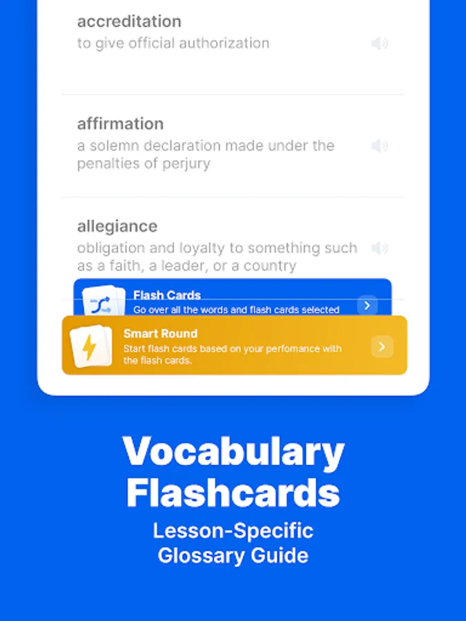 Confused by a term? We've got you covered! Our app features a full vocabulary glossary to support your Life in the UK 2023 study sessions. With each term explained clearly, you can learn effectively.