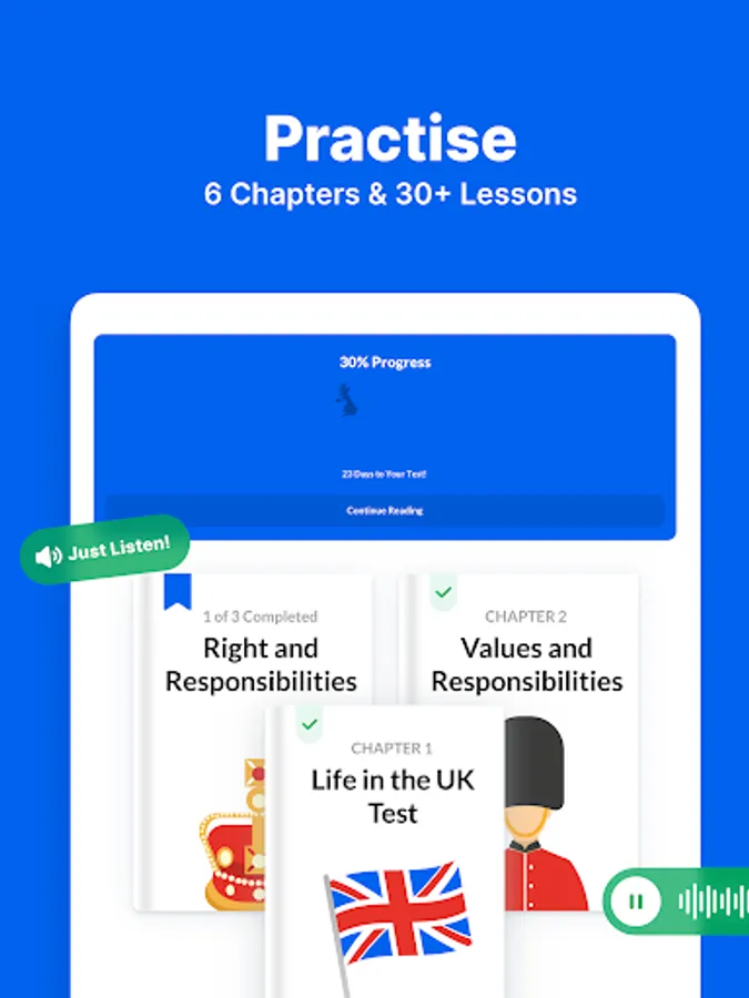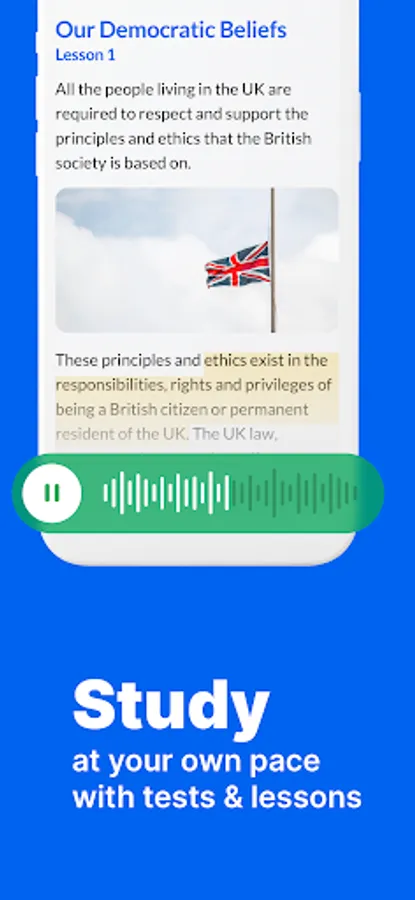 Stay engaged and focused with our audio-enabled lessons. Follow each paragraph and word attentively, thereby enhancing your grasp of the content for the Life in the UK Test.