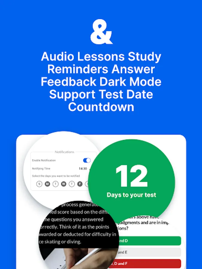 Our app allows you to monitor your study progress as well as your test performance. Stay updated about your average times, test scores and easily pick up from where you left off with our 'Continue Studying' feature.