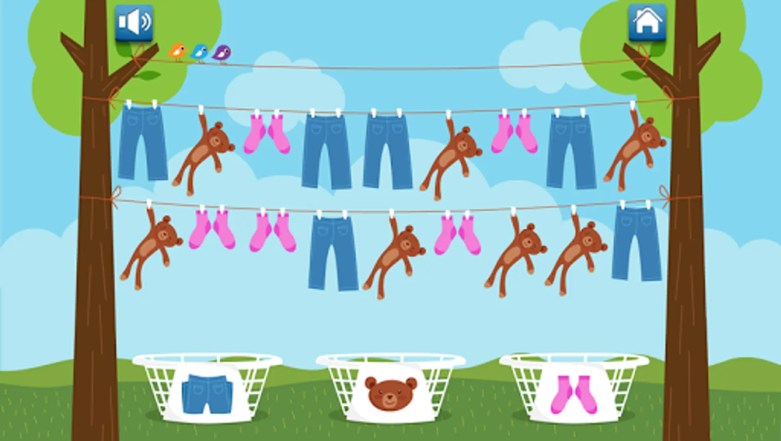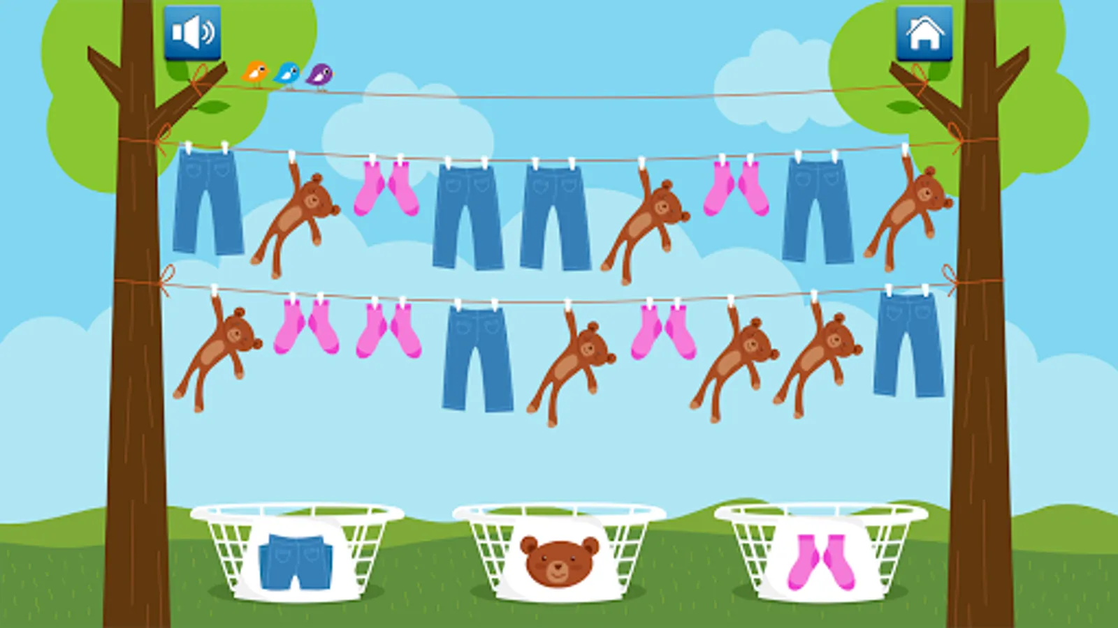Sort – Group laundry hanging on the clothesline into baskets first by shape, then color and later size. Typical sorting games are limited to shapes but by providing additional grouping options children reinforce their understanding of this foundational mathematical skill.