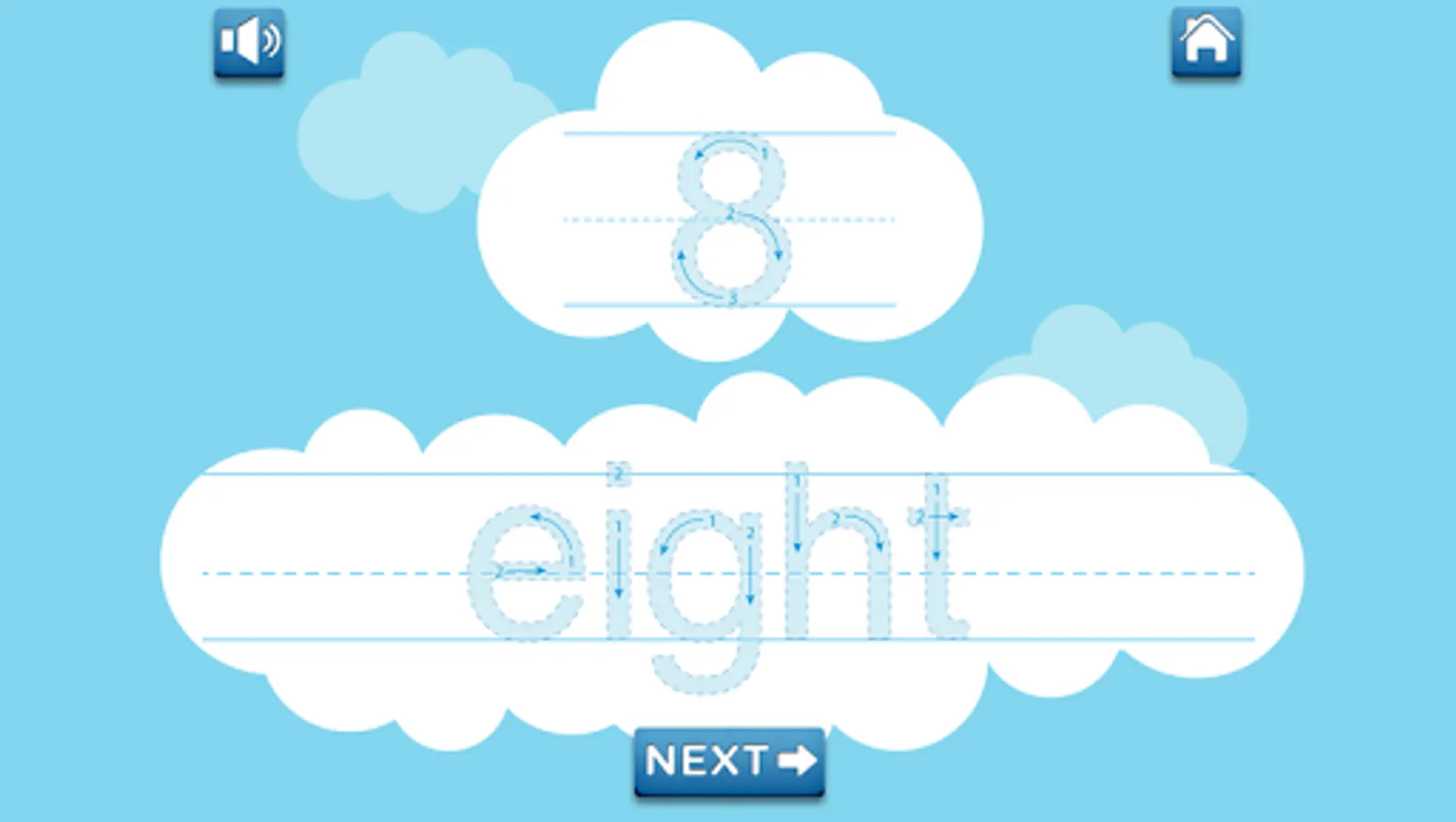 Count – Apples magically appear on the apple tree as your child counts to 20 with audio confirmation along the way. Build associative understanding and fine motor skills tracing numbers alphabetically and numerically in the puffy white clouds above the apple tree.