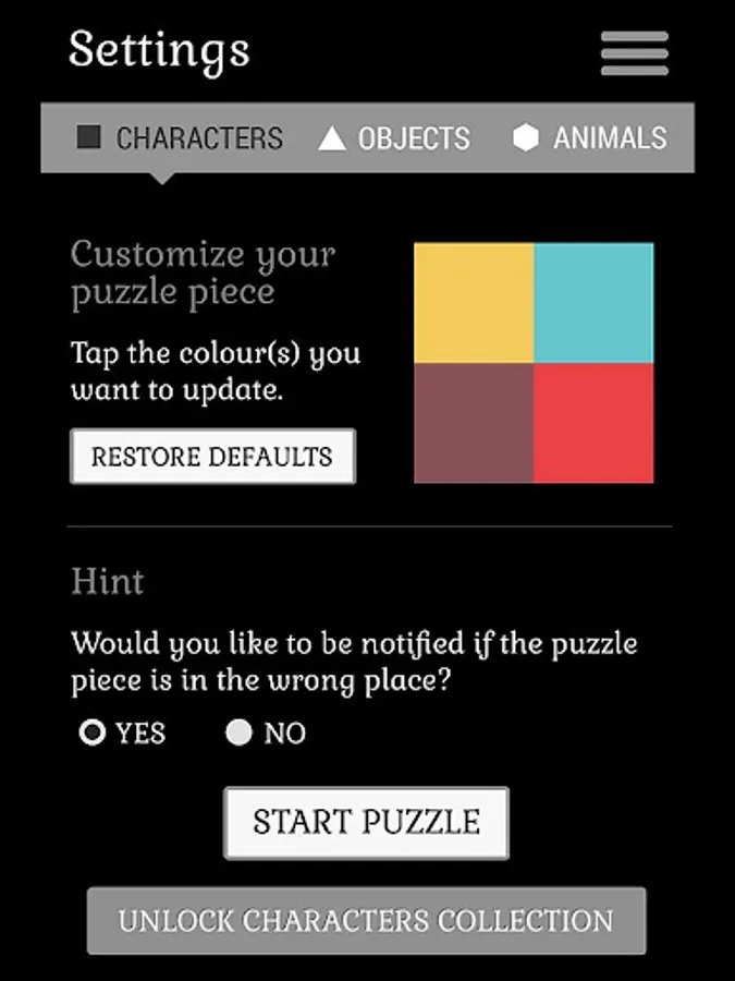Develop your Pingtu skills using 4 uniquely colored square pieces to collect 25 character icons.