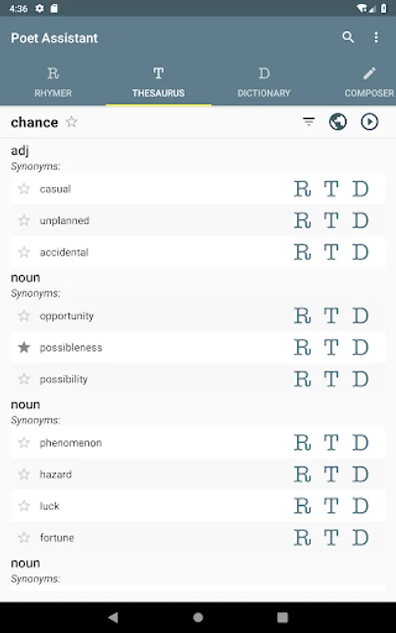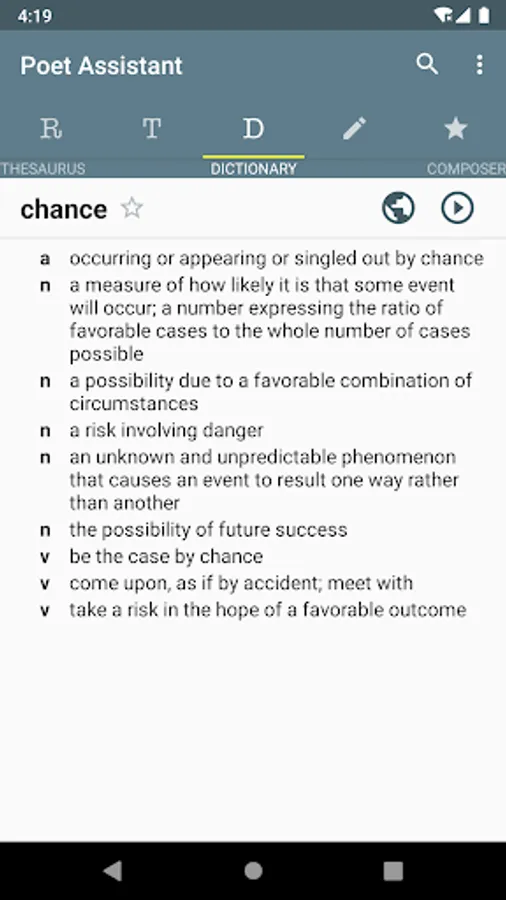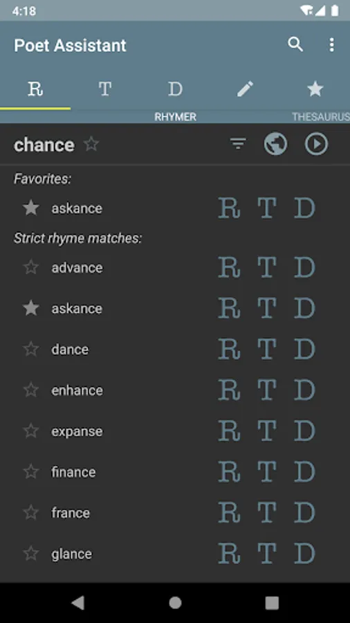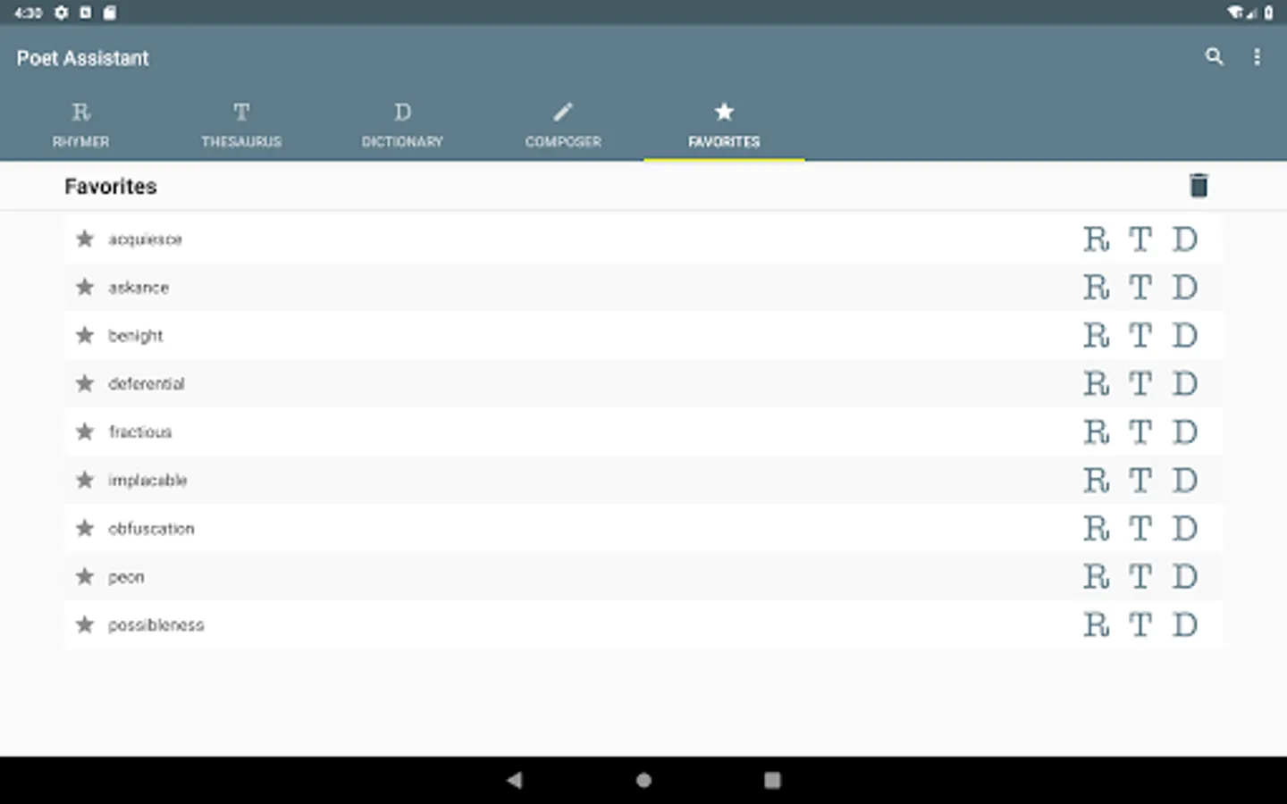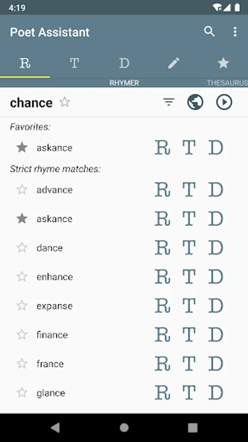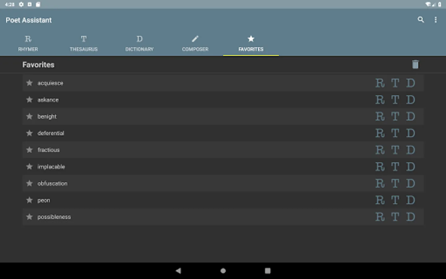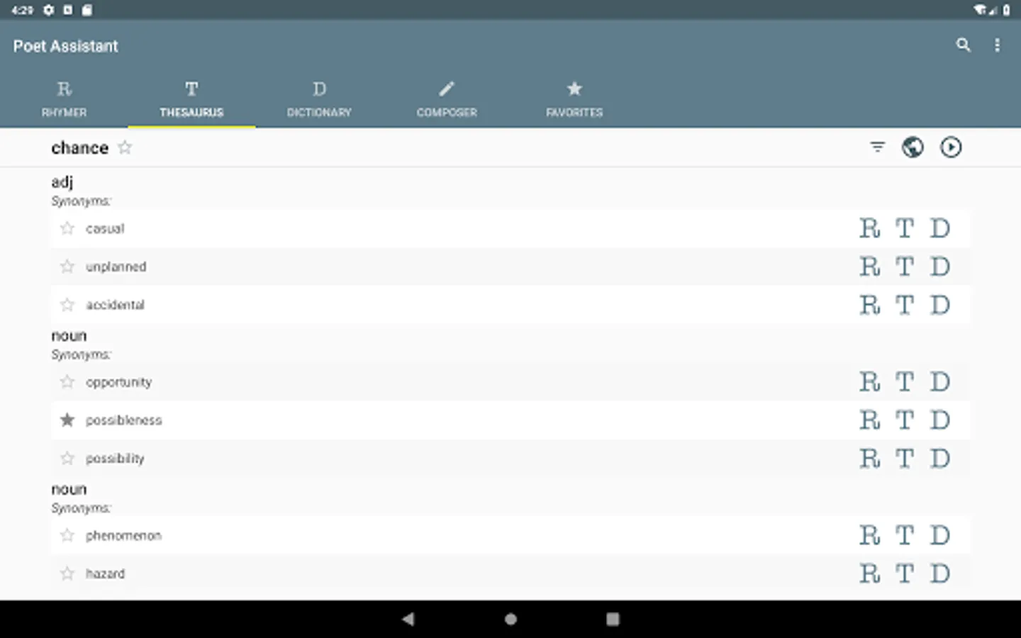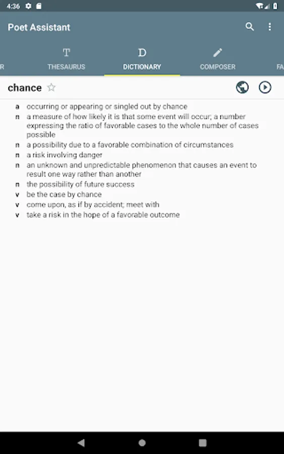 Note: This is the original Poet Assistant app. It is completely free, truly offline (no internet permission), no ads, and no in-app purchases.