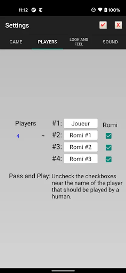 * Added Pass and Play mode, where a single device can be used by multiple human players, passing the device to the next player, once they have completed their turn.