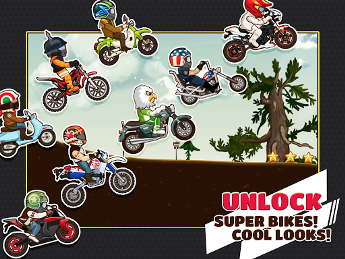 Choose your favourite bike from a collection of scooters, dirt bikes, cruisers and speed bikes! Customize your ride with paint jobs and use all-new power-ups to achieve the best scores!
