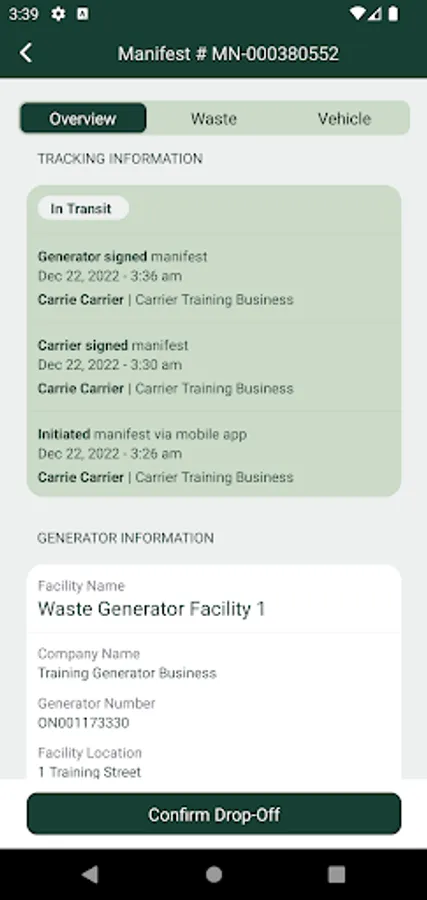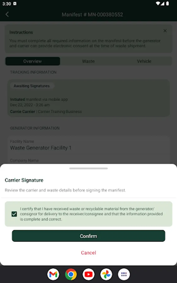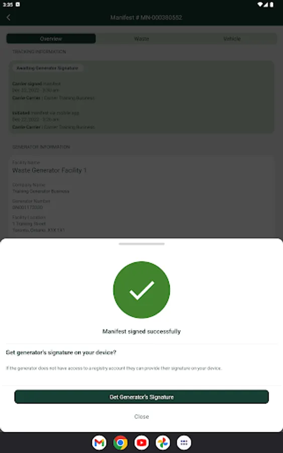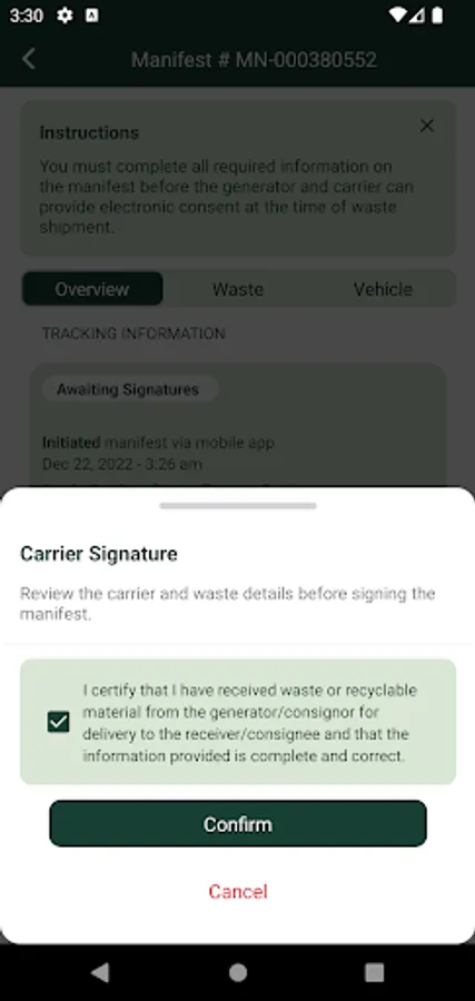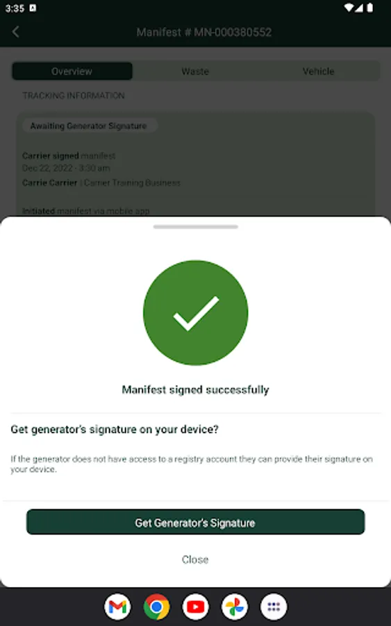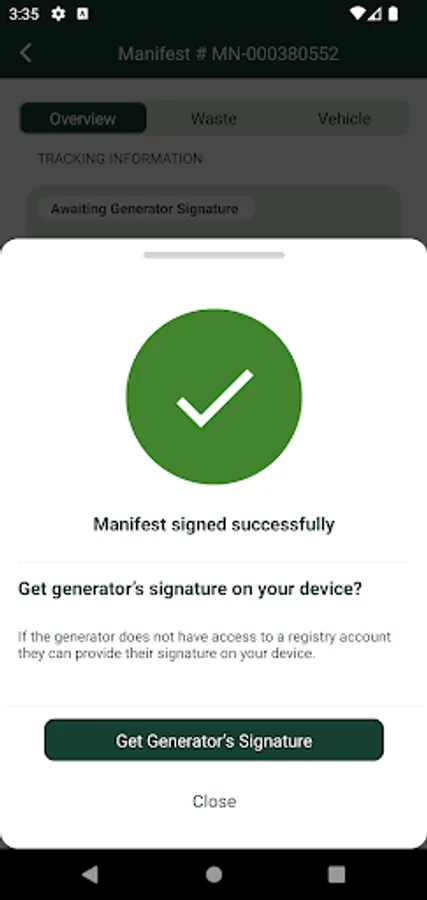b. Generators have the option to sign the manifest on the carrier's mobile device without logging in, saving time and avoiding adding multiple users to the system