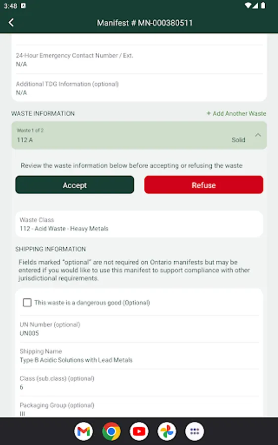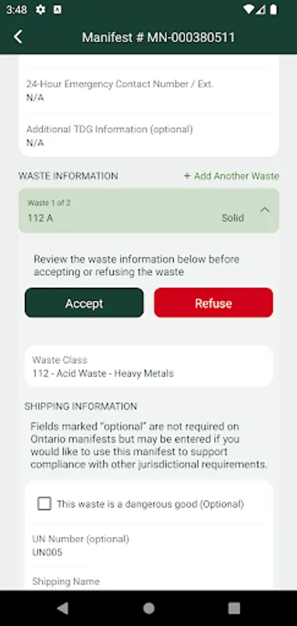 a. Receivers can make decisions for each waste stream before completing the manifest, including accepting, refusing, partially refusing, and making corrections