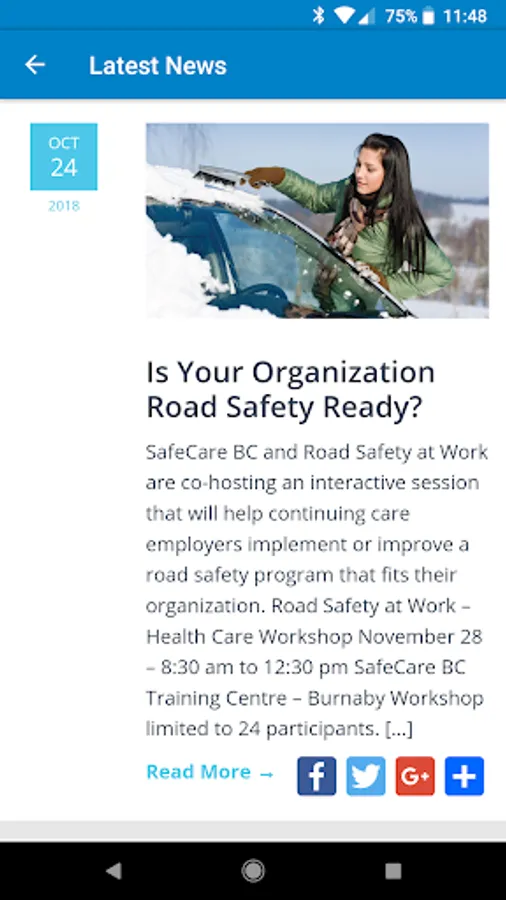 Users can access valuable features such as health and safety resources and tools (e.g. ‘Front-line Resources’, ‘Newsletter’, ‘Safety in 60 Seconds’), register for workshops (e.g. Provincial Violence Prevention Curriculum, LPN Leadership, Safe Client/Resident Handling), access workshop materials (slides, documents, pre-readings, quizzes, surveys), and connect with SafeCare BC (social media links, video links, contact information). SafeCare BC will continue to work to ensure that new and updated materials are being posted on the app regularly.