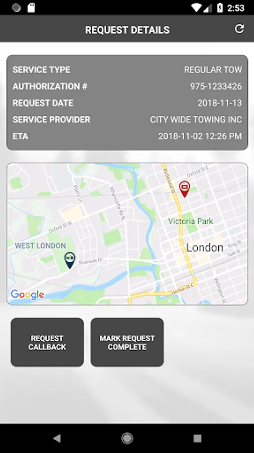 The assigned Tow Provider, ETA, and status updates will be pushed directly to the device keeping the user updated providing peace of mind assurance that help is on the way.