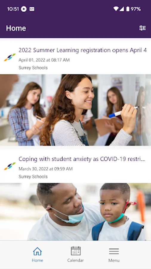 The Surrey Schools app provides news, events, announcements and alerts from Surrey School District #36.