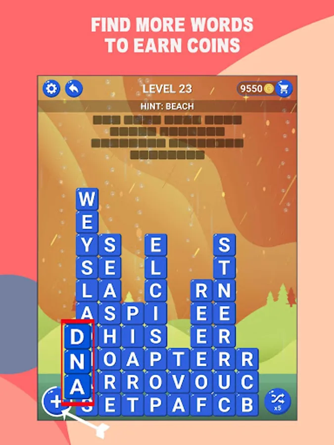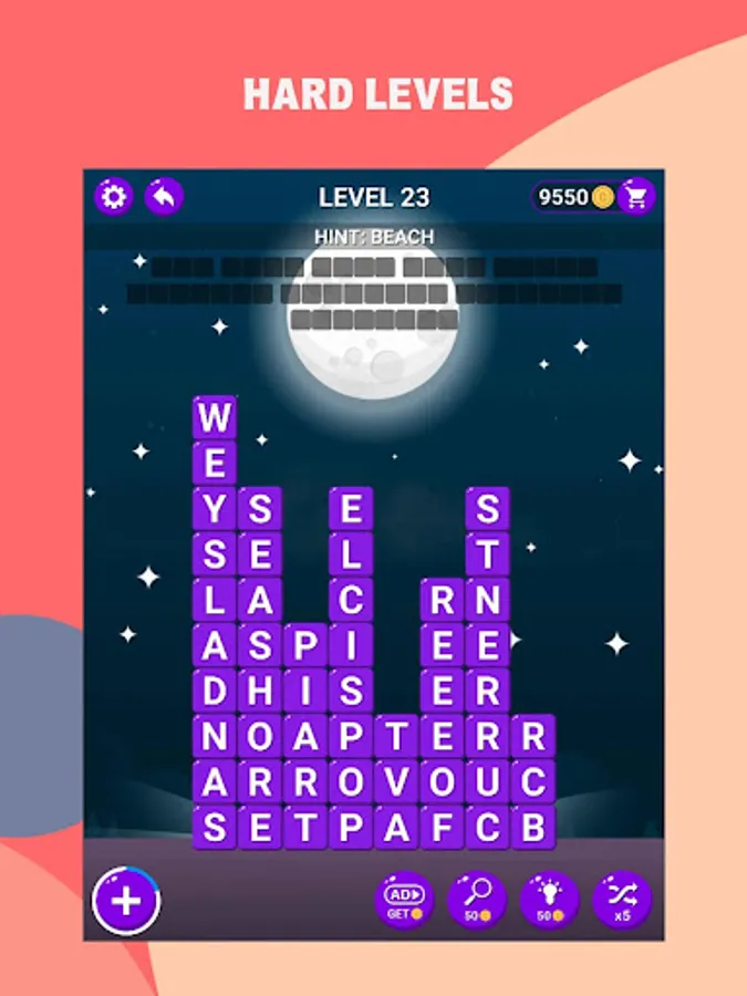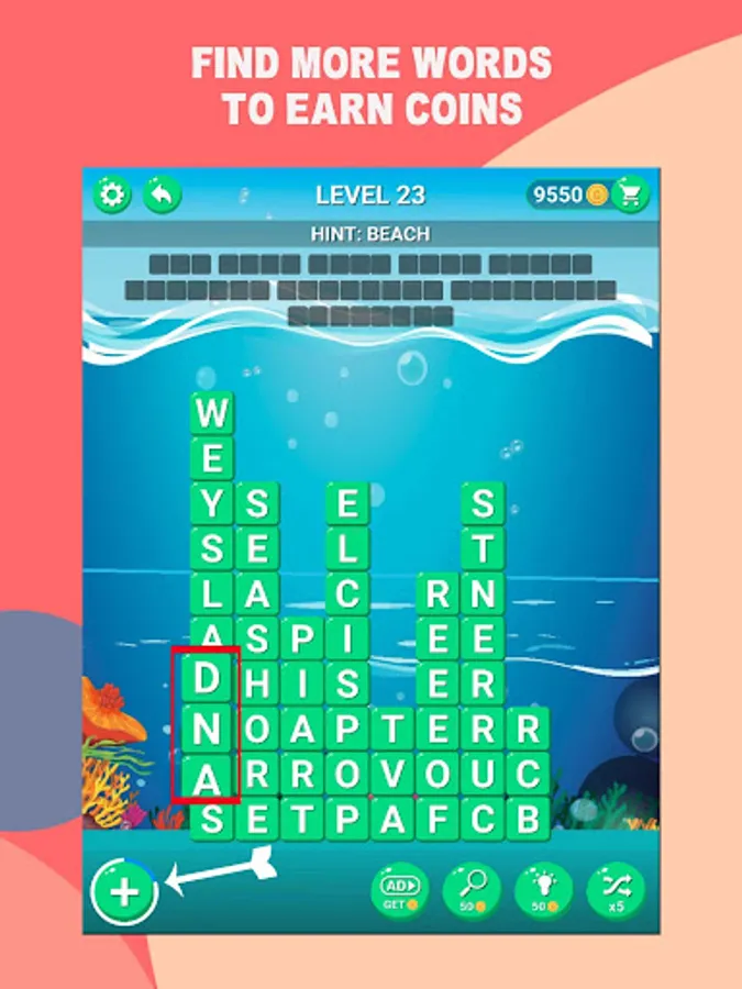 * Extra Words: Words found in a level that are not part of the level give the player bonus coins!