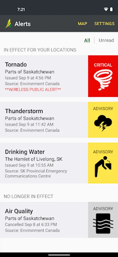 Alerts can be issued by Government of Saskatchewan ministries, crowns and agencies, local governing jurisdictions and Environment and Climate Change Canada (ECCC).