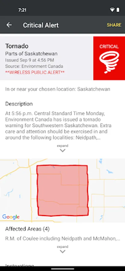 Government of Saskatchewan Ministries, Crowns, agencies of the province, local governing jurisdictions, and policing agencies issue alerts for their areas of responsibility when emergency events are occurring that have the potential to affect life and safety.